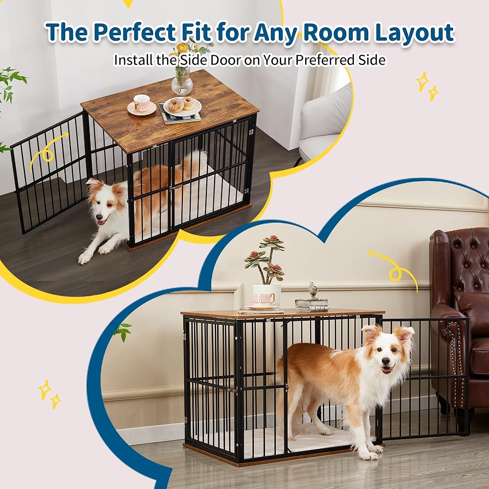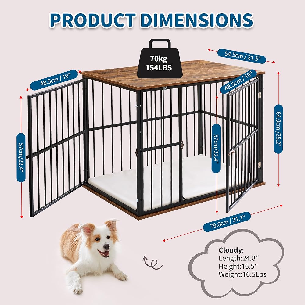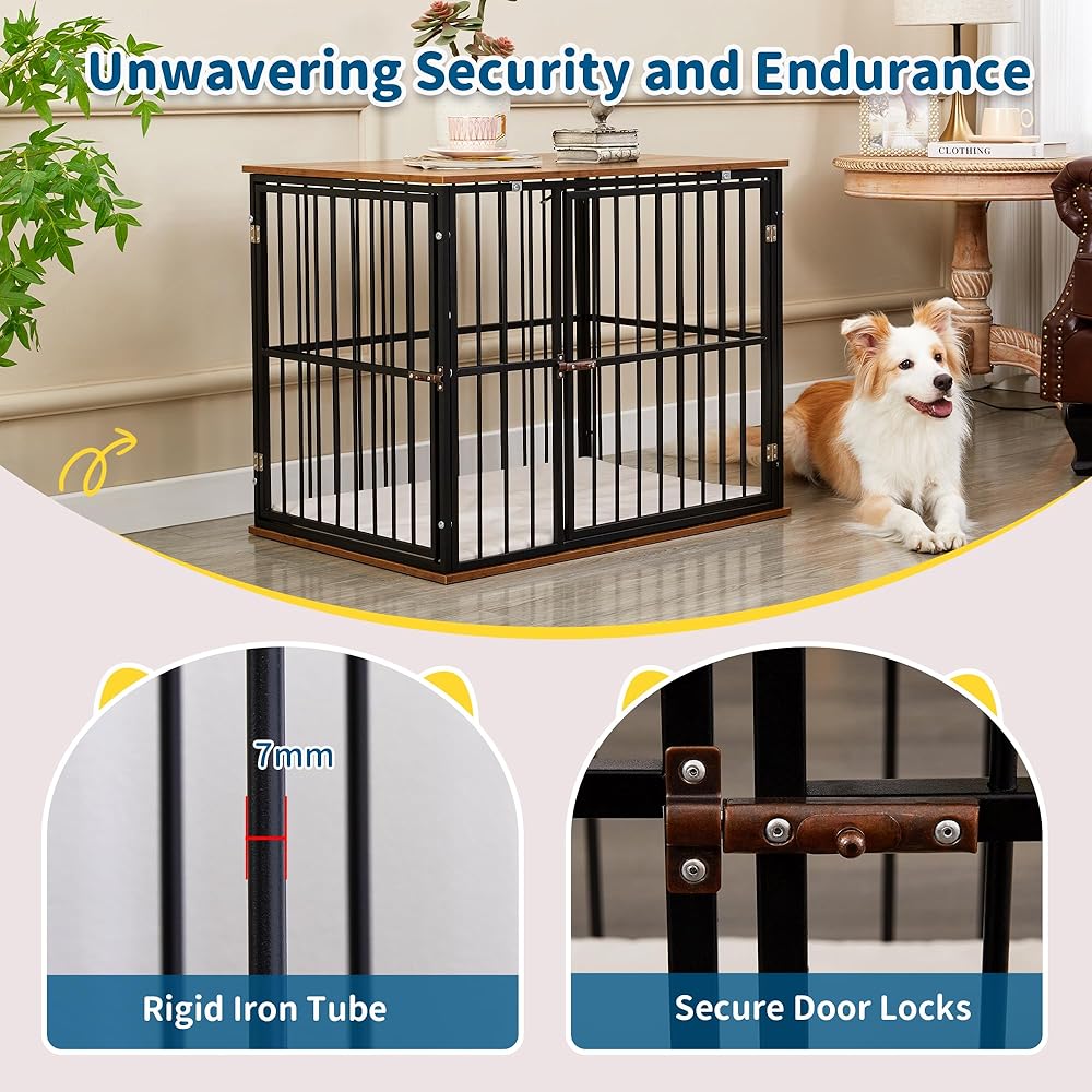 【هيكل قوي】: أثاث قفص الكلاب الخاص بنا مصنوع من ألواح خشبية شديدة التحمل وأنابيب حديدية، مما يوفر الدعم الكافي وحماية السلامة.
