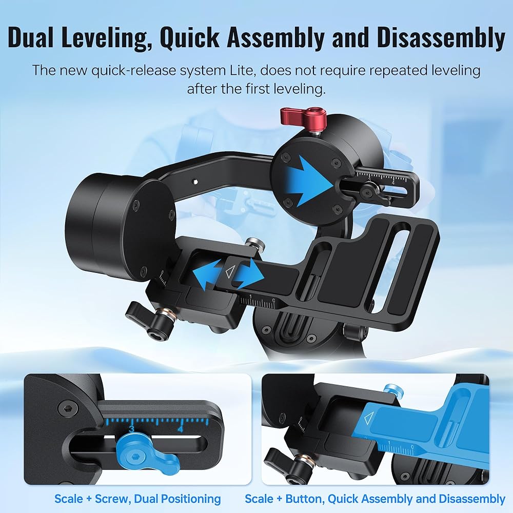 • التسوية المزدوجة والتفكيك السريع والتجميع: تعتمد ZHIYUN CRANE M2 نظام التحرير السريع المصمم حديثًا Lite. تم تجهيز لوحة التحرير السريع بمقياس + تصميم مزدوج لتحديد المواقع. ليست هناك حاجة لتكرار التسوية بعد التسوية الأولى. تستغرق عملية التفكيك والتجميع 3 ثوانٍ فقط.