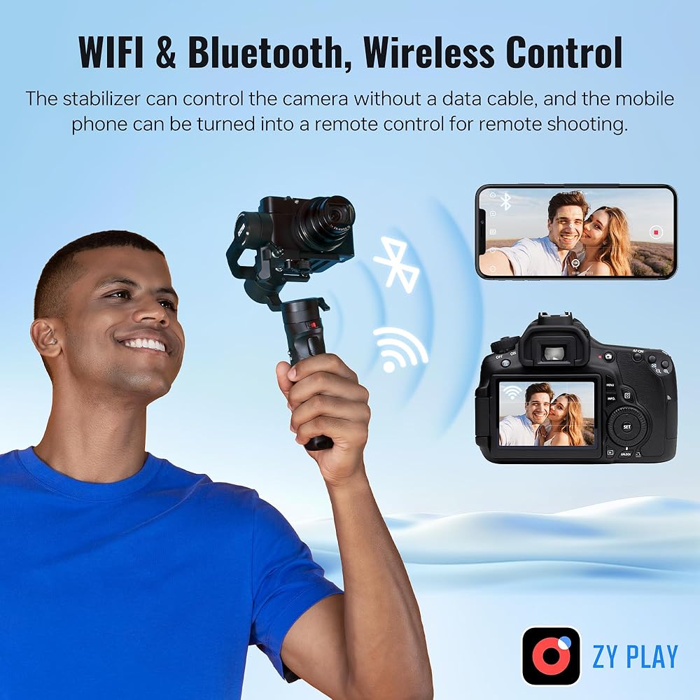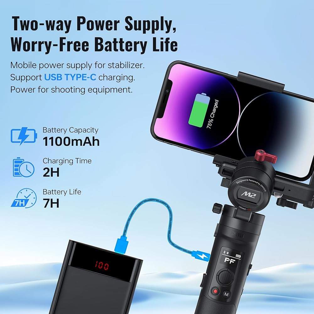 ZHIYUN Crane-M2 [رسمي] مثبت جيمبال للكاميرا، 3 في 1 خفيف الوزن للهواتف الذكية، وكاميرا الحركة الرياضية، وكاميرا GoPro وكاميرا بدون مرآة، مع مشبك للهاتف الذكي، حامل ثلاثي القوائم