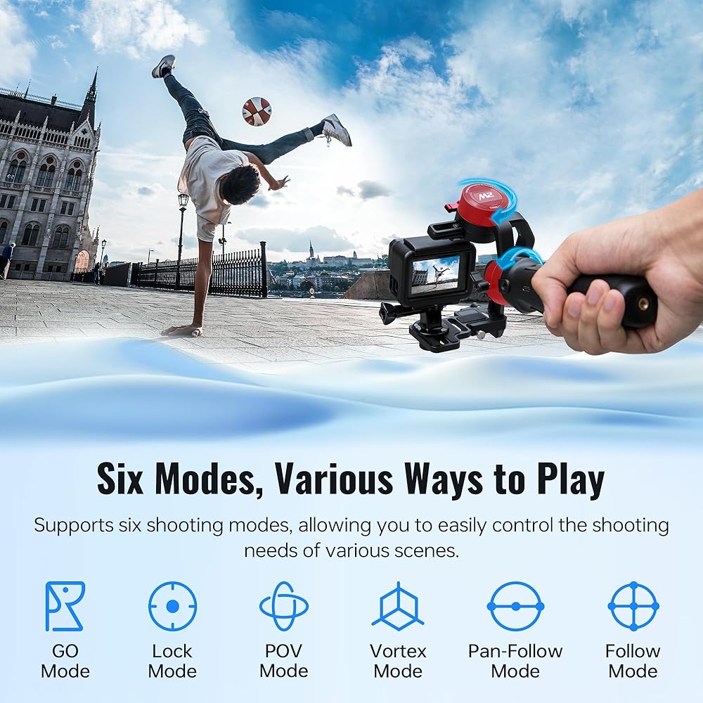 • صغير ومحمول: يتميز ZHIYUN M2 gimbal بخفة الوزن مثل مثبتات الهاتف المحمول السائدة، وهو رائع وصغير الحجم بما يكفي للتحكم فيه بيد واحدة؛ يجعل نسيج المقبض المريح للغاية التصوير أكثر راحة وحرية.