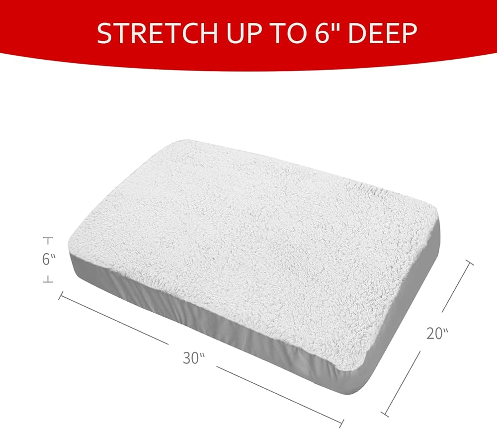 ملاءمة مرنة: غطاء سرير الكلب بتصميم شريط مطاطي يناسب سرير الكلب بإحكام، ويبلغ مقاس سرير الحيوانات الأليفة 20 × 30 بوصة (يناسب عمقًا يصل إلى 6 بوصات). يمكن وضع غطاء سرير الكلاب بسهولة وإزالته بسهولة، وهو ما يناسب معظم أسرة الحيوانات الأليفة القياسية.