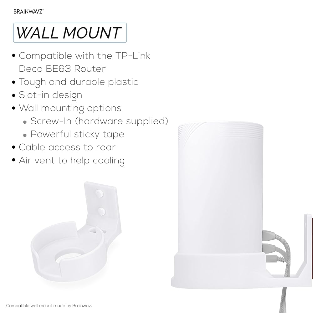 حامل على الحائط للحصول على واي فاي أفضل: احصل على أقصى استفادة من نظام التوجيه الشبكي الخاص بك عن طريق وضعه أعلى على الحائط الخاص بك للحصول على أقصى نطاق واستقبال. عند تركه على الطاولات، لا يوفر المستوى المنخفض الوضع المثالي لجهاز التوجيه الخاص بك للوصول إلى إمكاناته الكاملة. تم تصنيع هذا المنتج وتصميمه بواسطة Brainwavz، هذا المنتج متوافق مع جهاز التوجيه الشبكي WiFi TP Link BE63 (BE1000) فقط.