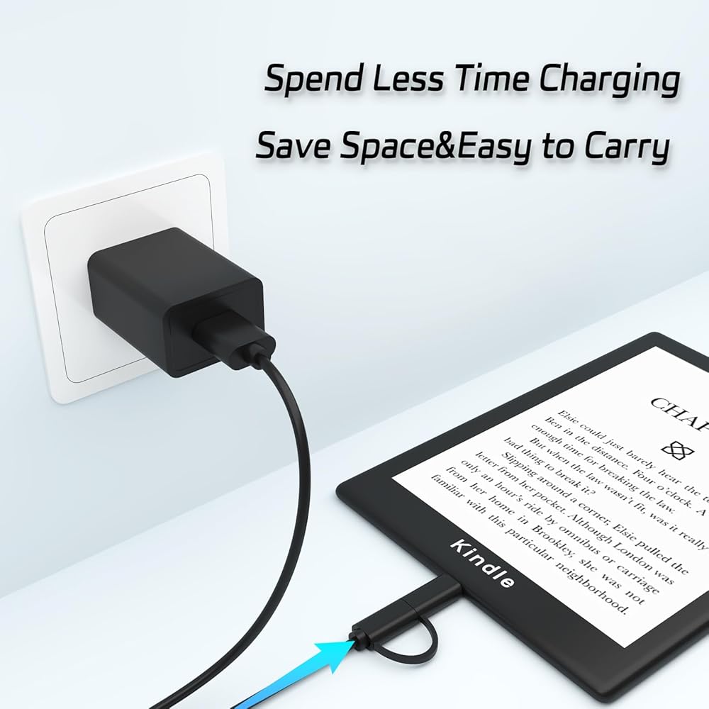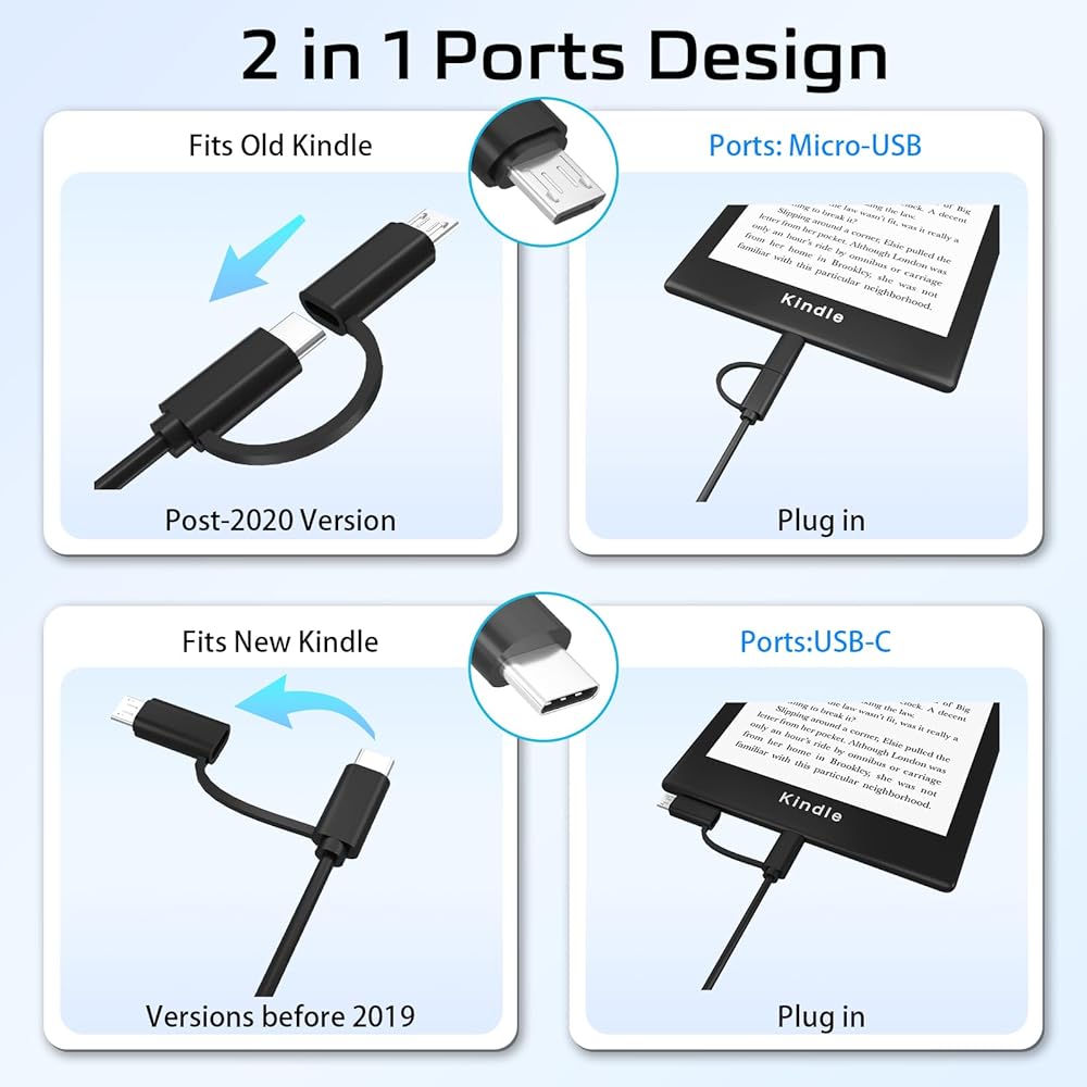 Wide Compatibility: The tablet charging cord equip with USB C and Micro USB ports which can charge all new and old kindle devices. For example kindle e-readers, kindle paperwhite 2012-2021, fire hd 6 7 8 10plus/Kids/Kids pro, amazon fire max 11, kindle oasis/voyage. Also fit for Samsung Galaxy Tab A A7 A8 A9 S2 E, TV stick/fire-stick