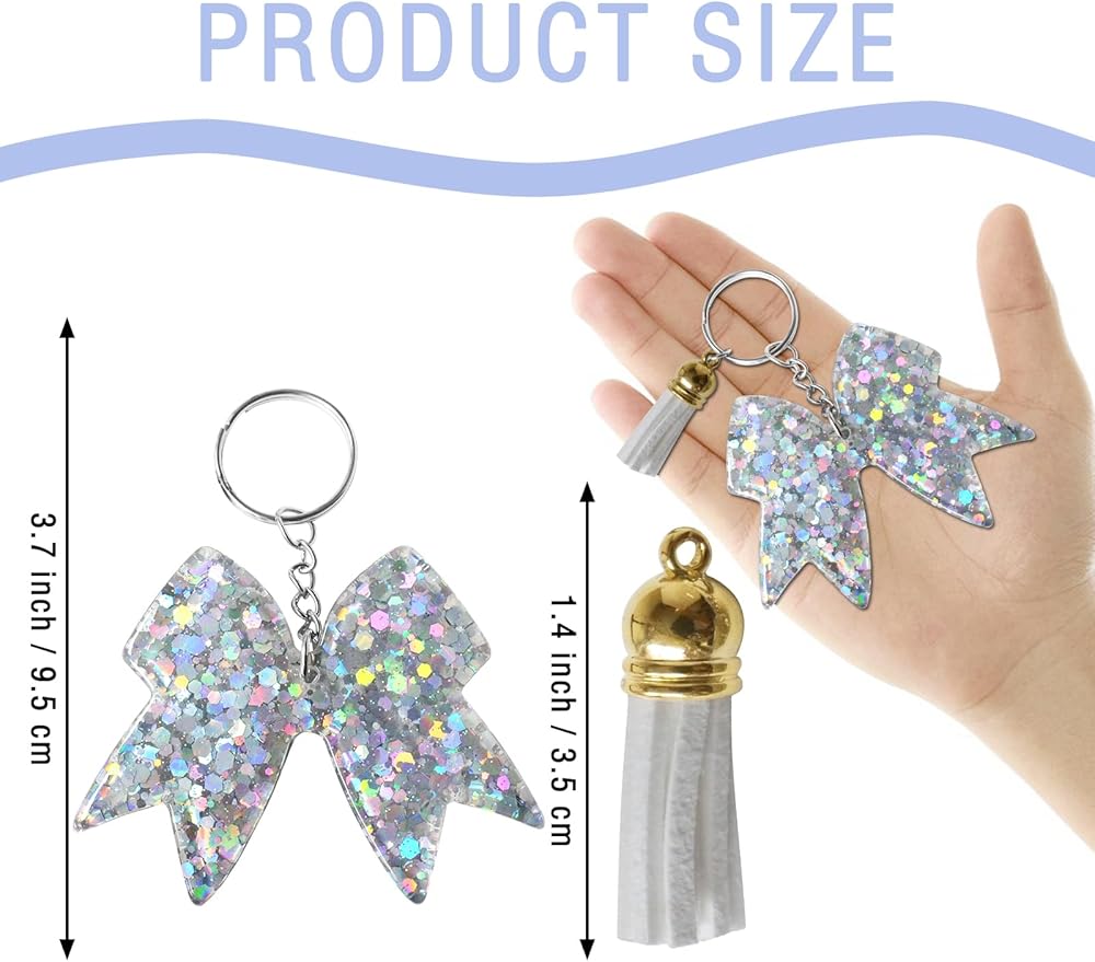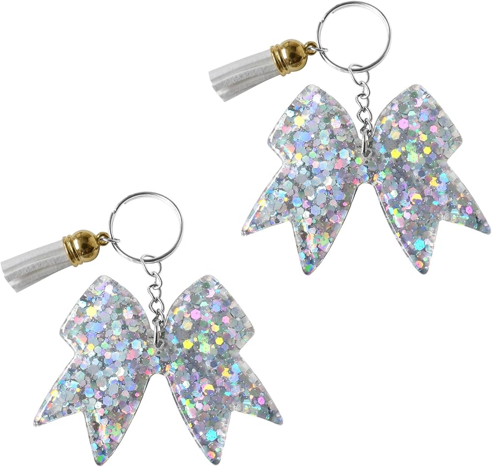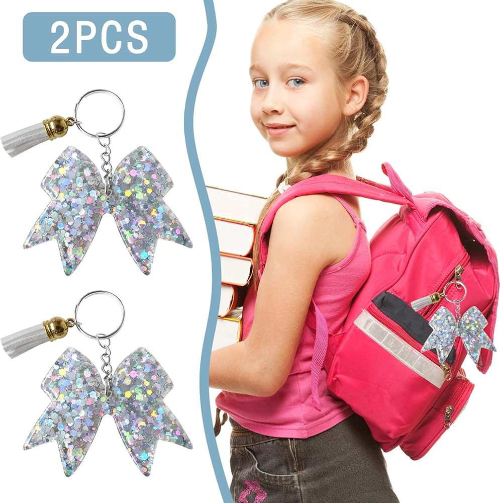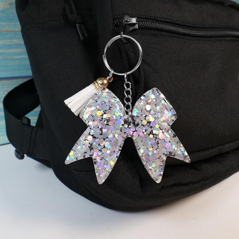 【سلسلة مفاتيح تشجيع للفتيات】أضف لمسة من البهجة إلى مفاتيحك مع سلسلة مفاتيح التشجيع الخاصة بنا للفتيات. تتميز سلسلة المفاتيح الرائعة هذه بتصميم فيونكة ساحرة وشرابة نابضة بالحياة، مما يجعلها إكسسوارًا مثاليًا للمشجعات الصغار.