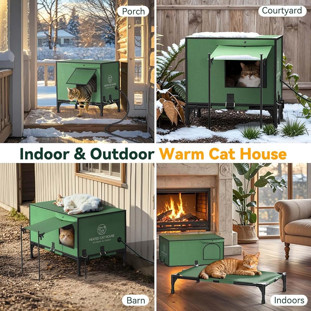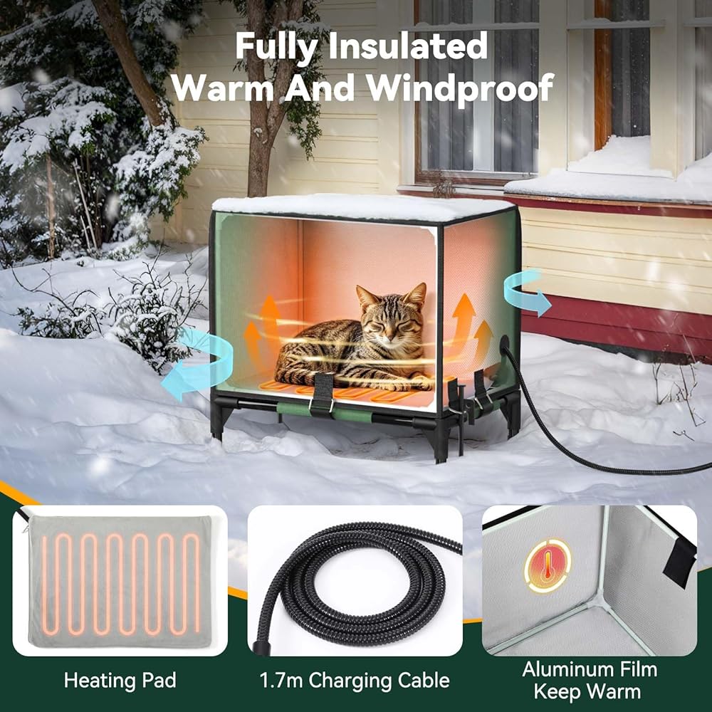 • وسادة تدفئة عالية المستوى - يأتي بيت القطط المعزول في الهواء الطلق مع وسادة تدفئة مقاومة للماء مقاس 17 × 17 بوصة / غطاء من نسيج القطيفة الناعم / سلك طاقة 1.7 متر، والذي يمكن أن يوفر تجربة دافئة ومريحة للقطط، كما يسمح سلك الطاقة الطويل للغاية يمكنك استخدامه في أي أماكن خارجية وداخلية!