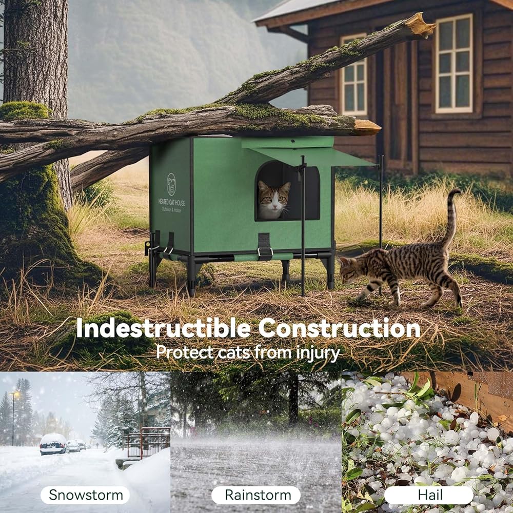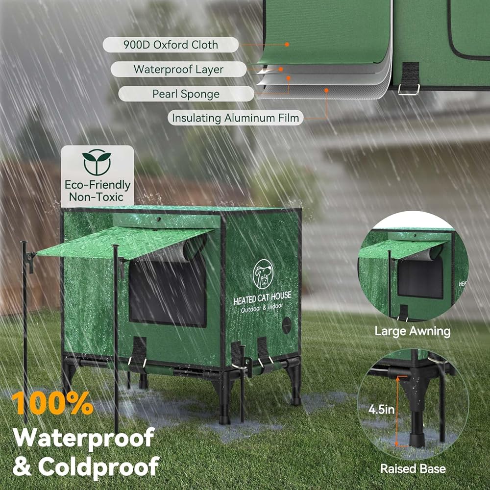 • تصميم مرتفع ومقاوم للطقس بالكامل - تمنع مظلة أكسفورد المقاومة للماء 900 دي المطورة بالكامل المطر من الدخول إلى بيت القطط الخارجي الساخن، بينما تحافظ القاعدة المرتفعة 4.5 بوصة على سلامة الحيوانات الخارجية وجفافها في الأيام الممطرة أو الثلجية.