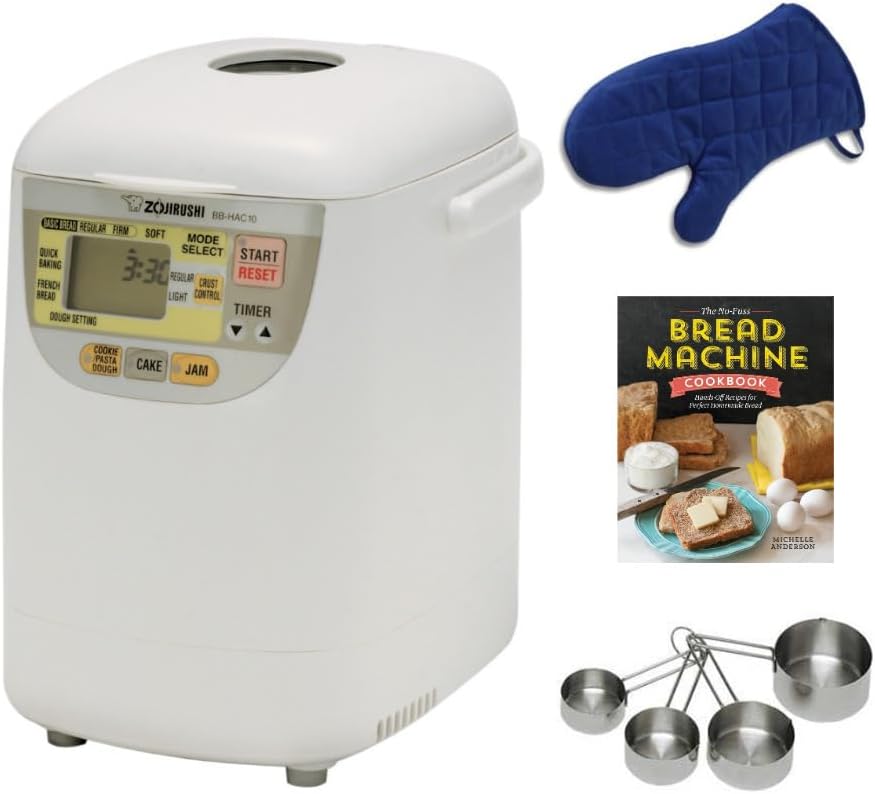 صانع الخبز الصغير من زوجيروشي هوم بيكري مع قفاز فرن، كوب قياس من الفولاذ المقاوم للصدأ ومجموعة ملاعق قياس من الفولاذ المقاوم للصدأ