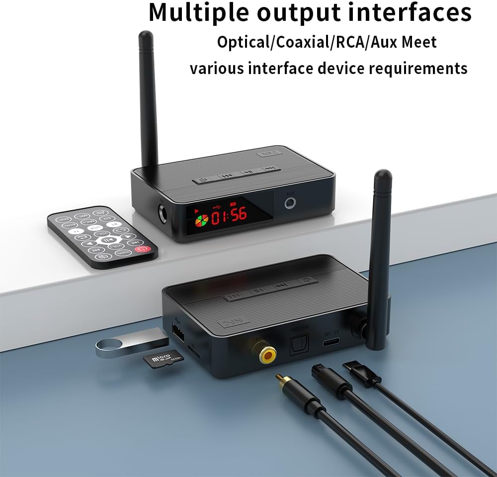 【مكونات غنية】 يحتوي محول البلوتوث للستيريو القديم على العديد من الواجهات لتلبية متطلباتك. بصري/محوري/RCA/Aux/بطاقة TF/Udisk