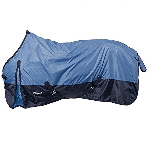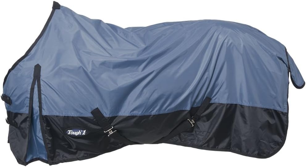Available in several vibrant colors, this sheet is great for that sudden rain shower at the show, camping, trail riding, or just out in the pasture. Features: 420 denier poly - Light Material Strength- Not Recommended for horses that bite, chew or rub on blankets or for horses turned out with a companion or in a group. Material may tear or rip if caught on a nail, rough fencing or thorns from bushes. No fill - provides wind and rain protection 70 Denier Poly Lining - Prevents rubbing and helps to keep the coat shiny while preventing hair, shavings, and straw from sticking to the inside of the blanket. Waterproof - coated outer shell with taped seams and seamless spine repels water to keep your horse dry. Breathable - Designed to allow moisture vapor to wick away from the horse and preventing sweating while retaining body heat and repelling outside coldness. Heavy Nylon Binding - Double sewn to secure material and provide additional durability. Reinforced Stress Points - Double Sewn with additional reinforcement to help prevent tears. Fleece Wither - Helps provide protection from rubbing. Double Buckle Front Closure - Velcro Secure with double buckle front straps featuring rust resistant nickel hardware. Action Shoulder Gussets - Allow for freedom of movement and help to prevent shoulder rubbing. Low Cross Adjustable Surcingles with T-Lock Fasteners - Provide easy adjustability to ensure proper fit. Ensure to referance blanket fitting guide to ensure correct fit. Adjustable Elastic Leg Straps - Help to secure the blanket and prevent from shifting from side to side. Tail Cover -provides additional protection from moisture near tail bone. Specifications: Measuring Instructions - Stand your horse as square as possible, measure from the center of chest around side of the body to the point of the horse's rump just before the tail. If you horse ends up measuring between sizes always round up to the next size to ensure full coverage. Washing Instructions - Machine wash with