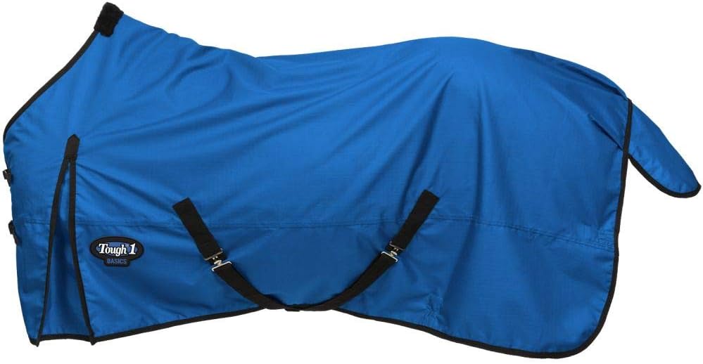 HEAVY DUTY 1 SHEET: This sheet is ideal for that sudden downpour at the show, camping, riding the trail, or just out on the grass. Made from strong and durable waterproof 1200 denier nylon with a 210 denier lining. It features shoulder gussets, adjustable and replaceable leg straps, front double buckle closure, and crossover belly. The back flap provides more tail and rump coverage while helping to reduce tail breakage. 34-912.