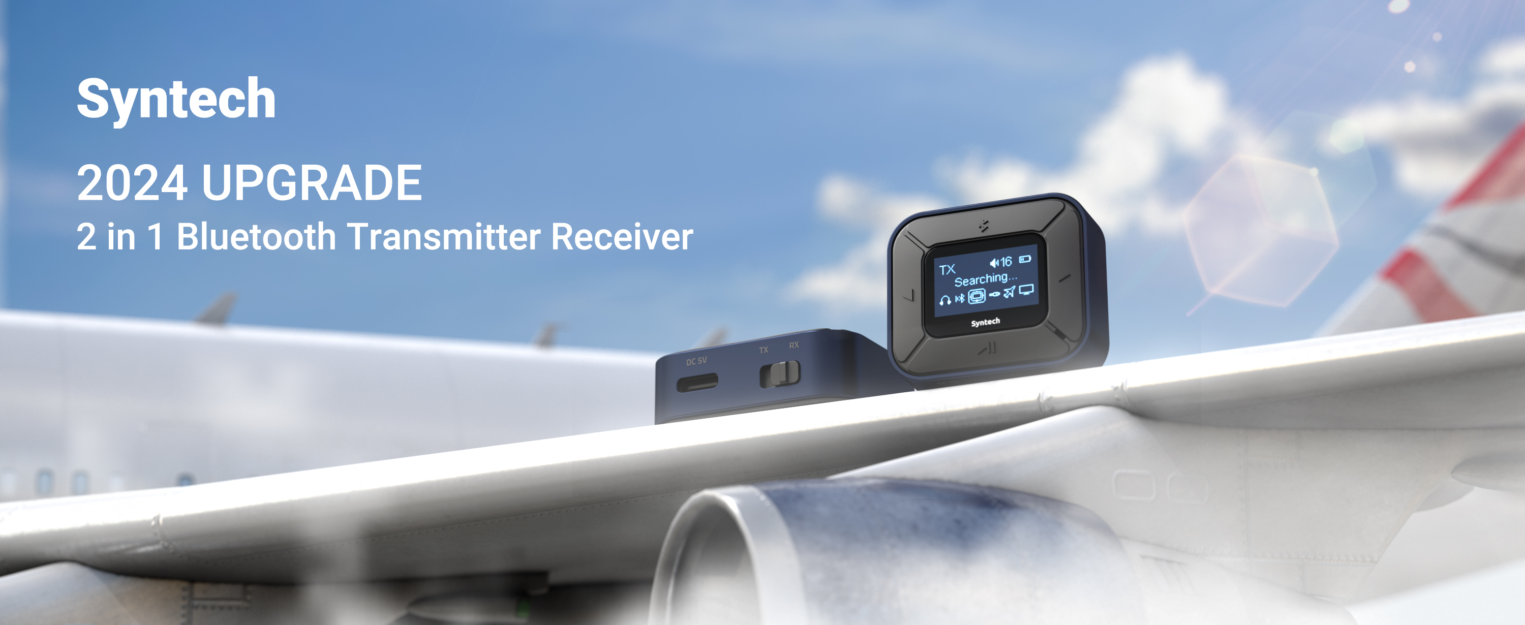 جهاز استقبال إرسال بلوتوث من Syntech لأجهزة Airpods أو سماعات الرأس، شاشة LED مزدوجة مزدوجة الكمون محول صوت لاسلكي بلوتوث 5.3 مع محول AUX مزدوج 3.5 مم لسيارة الطيران باللون الأزرق