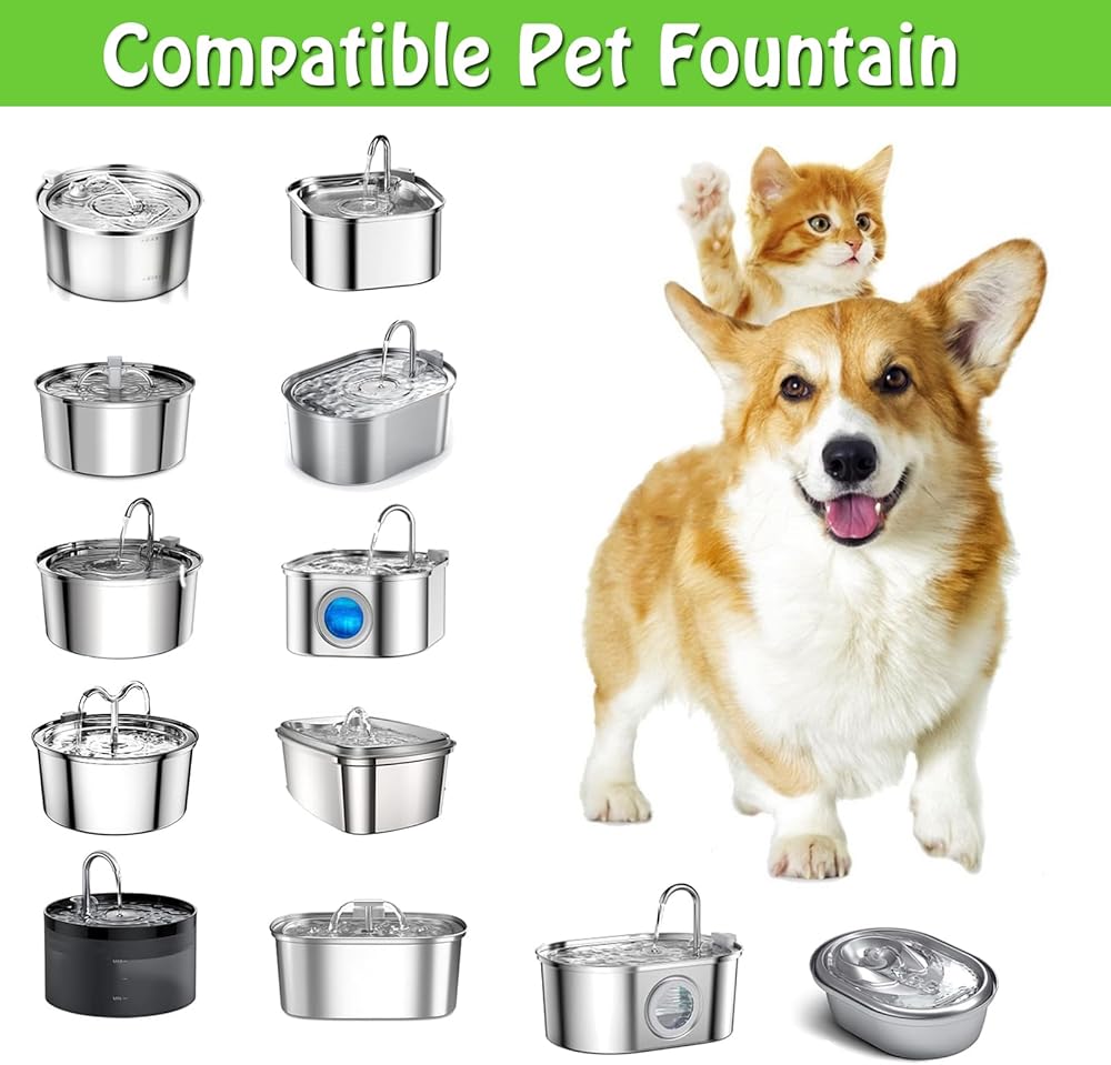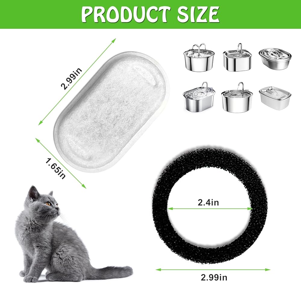 【نافورات القطط المتوافقة】يتوافق فلتر نافورة مياه القطط هذا مع نوافير مياه الحيوانات الأليفة المصنوعة من الفولاذ المقاوم للصدأ 67 أونصة/2 لتر، و101 أونصة/3 لتر، و108 أونصة/3.2 لتر، و135 أونصة/4.0 لتر. يرجى التحقق مما إذا كان متوافقًا مع نوافير مياه قطتك قبل الشراء لتجنب أخطاء الشراء.