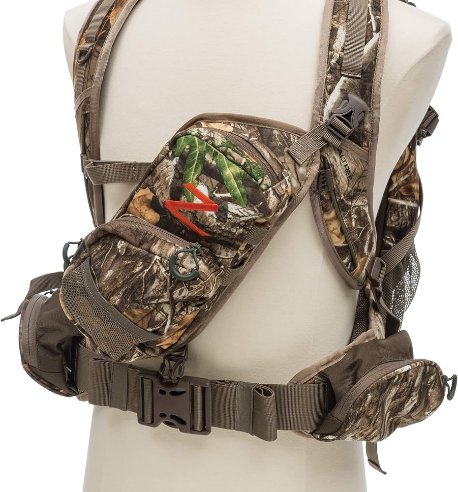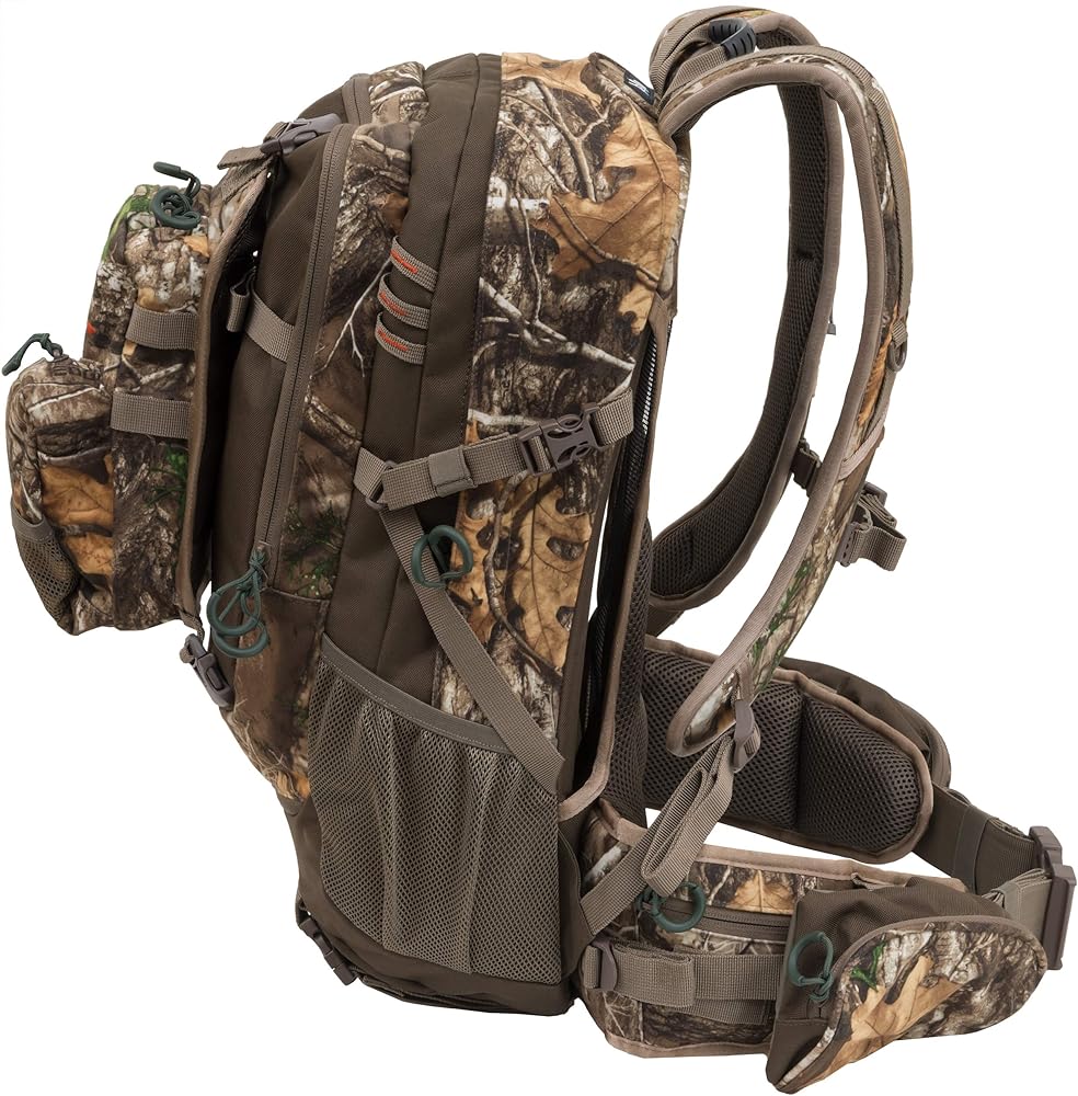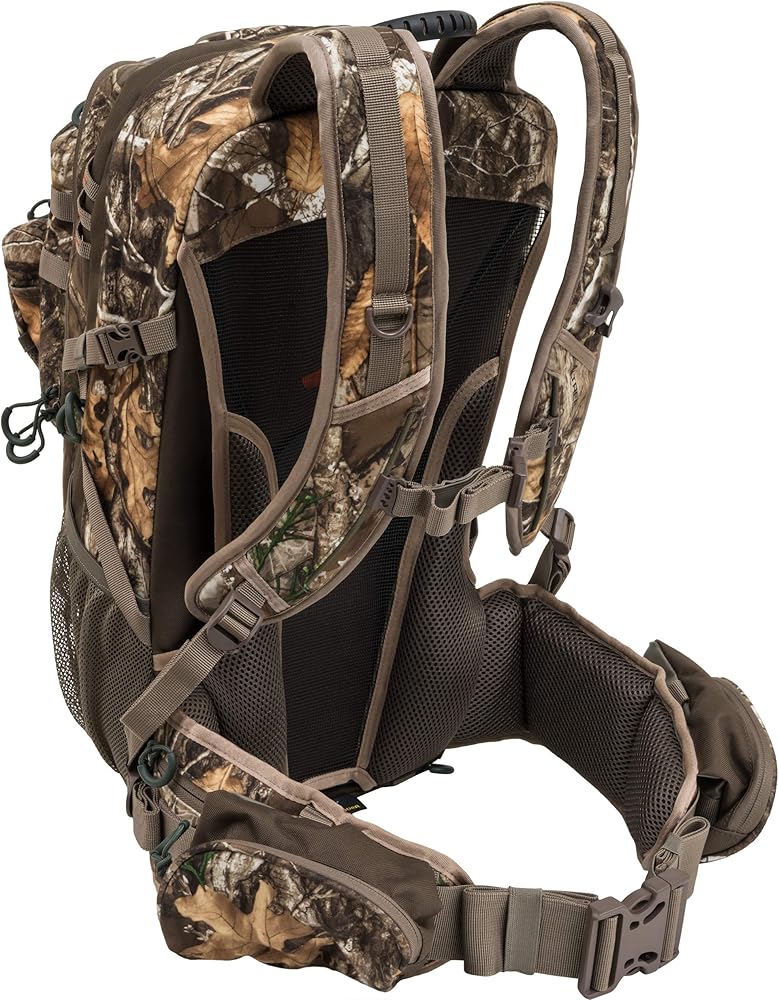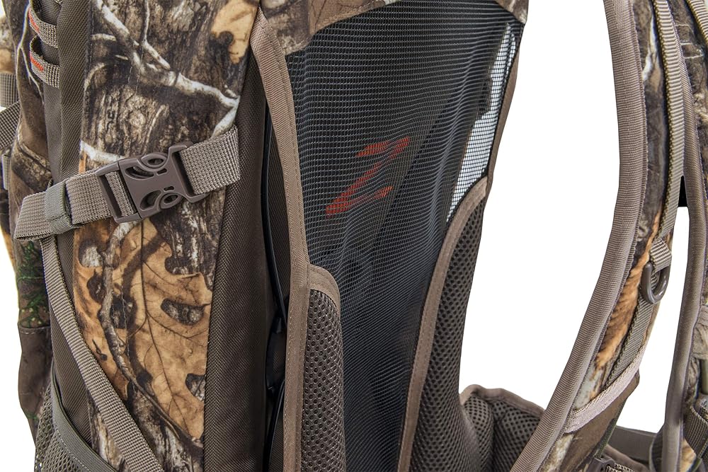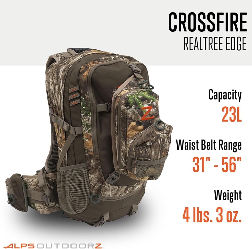 The Crossfire is a multipurpose pack that has been added to the popular line of ALPS Outdoor hunting packs. The Crossfire is a 2325 cubic inch pack that has a large main pocket, large organizational pocket, and detachable front pocket. The detachable front pocket has webbing and buckles that allow hunters to wear the pocket across their chest to keep calls and other essential items close and ready. This also allows hunters the option to leave the main part of the pack at the blind or starting point and just keep the detachable pocket with them. The detachable pocket can also be attached to the harness and waist belt via included buckles, so if hunters want to keep the pack on, but still want to have their calls in front and easily accessible, there are multiple options. It's such a versatile pack and hunters will appreciate all of the features it has to offer. The Crossfire also features a vented back to keep hunters cool while they're conquering rugged terrain. It features a lightweight X frame, that when combined with the padded shoulders straps and padded waist belt, makes for a very comfortable haul. There are large zippered pockets on the waist belt and two mesh pockets to keep water bottles easily accessible. The Crossfire pack is offered in brushed Realtree camo keep hunters quiet and hidden in the woods.