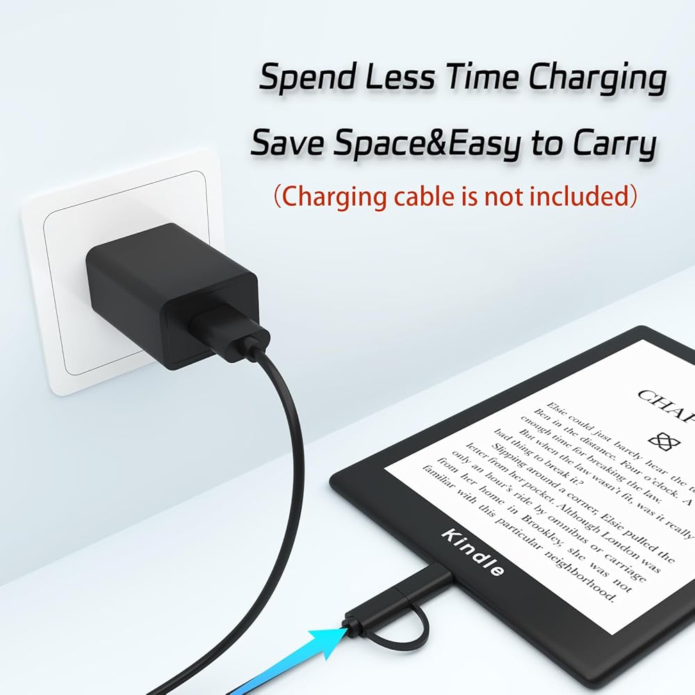 شاحن سريع: يتم شحن المحول بقدرة 10 واط بشكل أسرع من شاحن Kindle الرسمي من Amazon وهو متوافق مع شواحن Amazon 5W/9W USB OEM ومحولات الطاقة