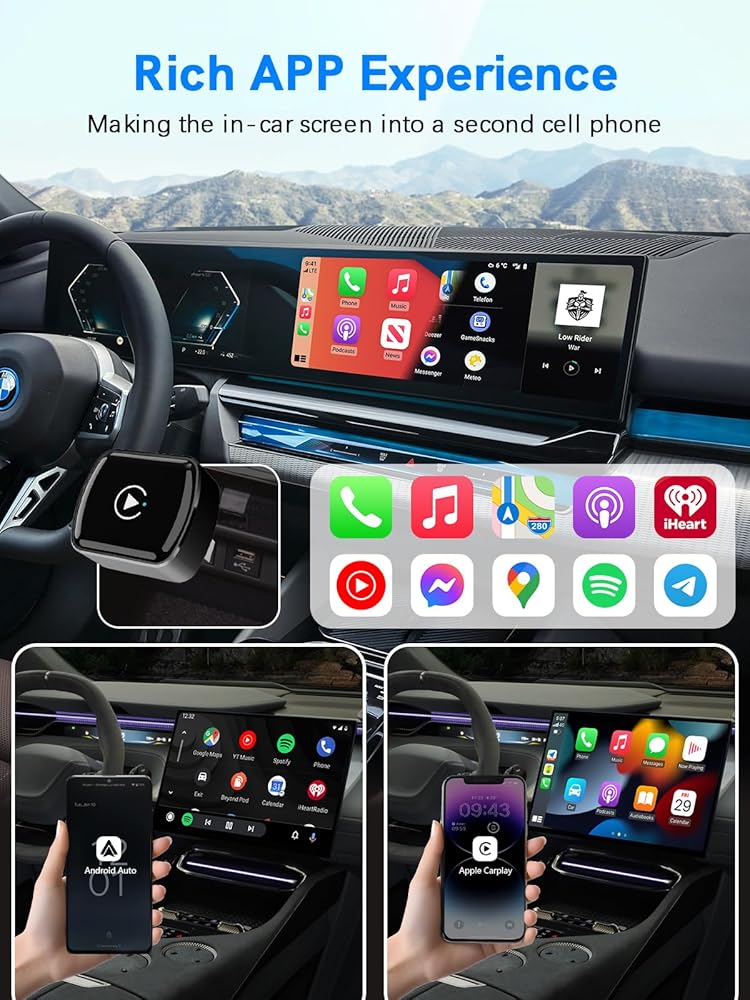 • 【توافق عالمي 】يدعم نظام iOS 10+ والمركبات المزودة بنظام CarPlay السلكي. يأتي مع محول USB إلى USB-C - سواء كان منفذ CarPlay السلكي في سيارتك من نوع USB أو USB-C، يمكنك استخدام المحول الخاص بنا بثقة لتجربة اتصال لاسلكية ومتعددة الاستخدامات