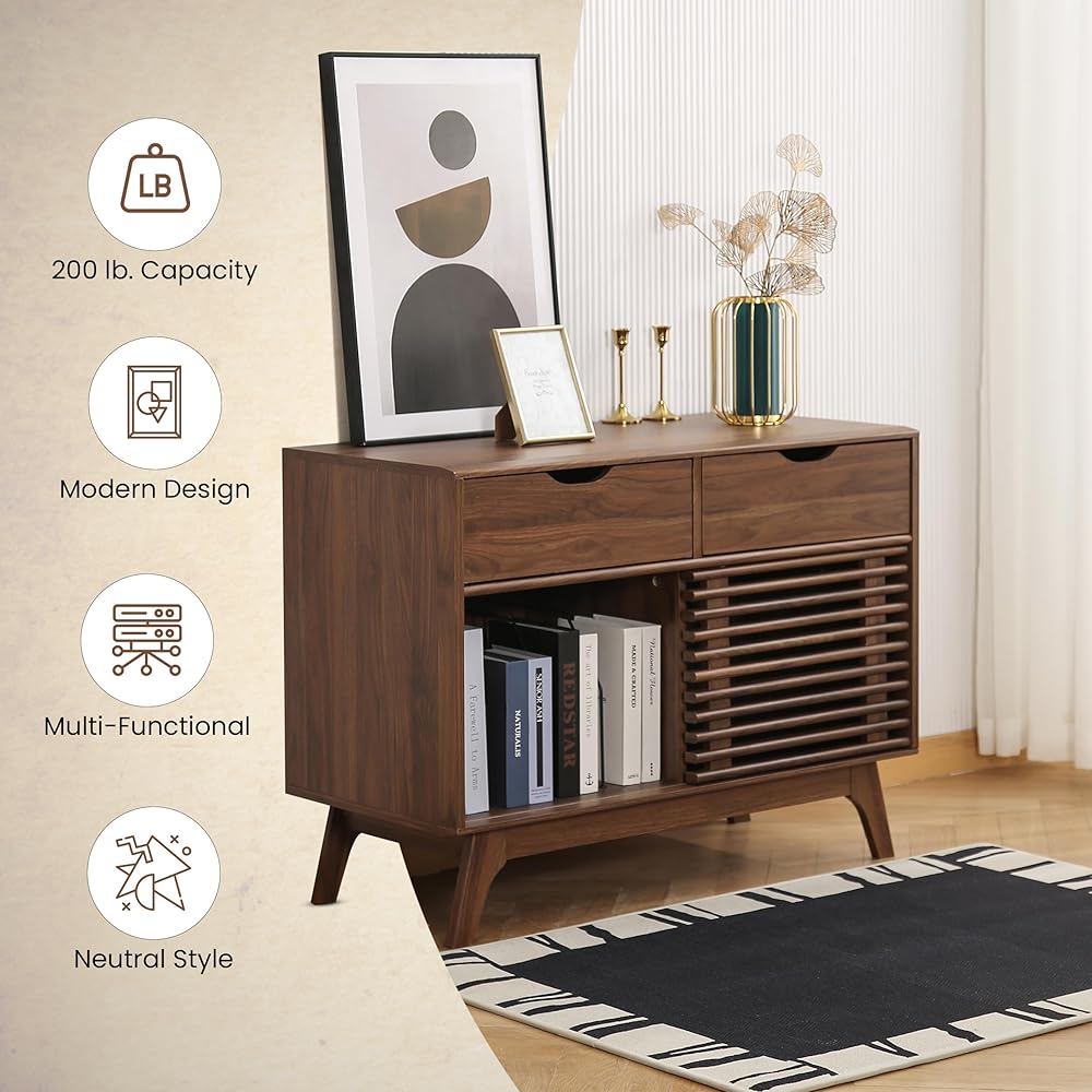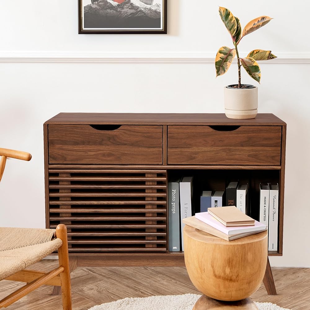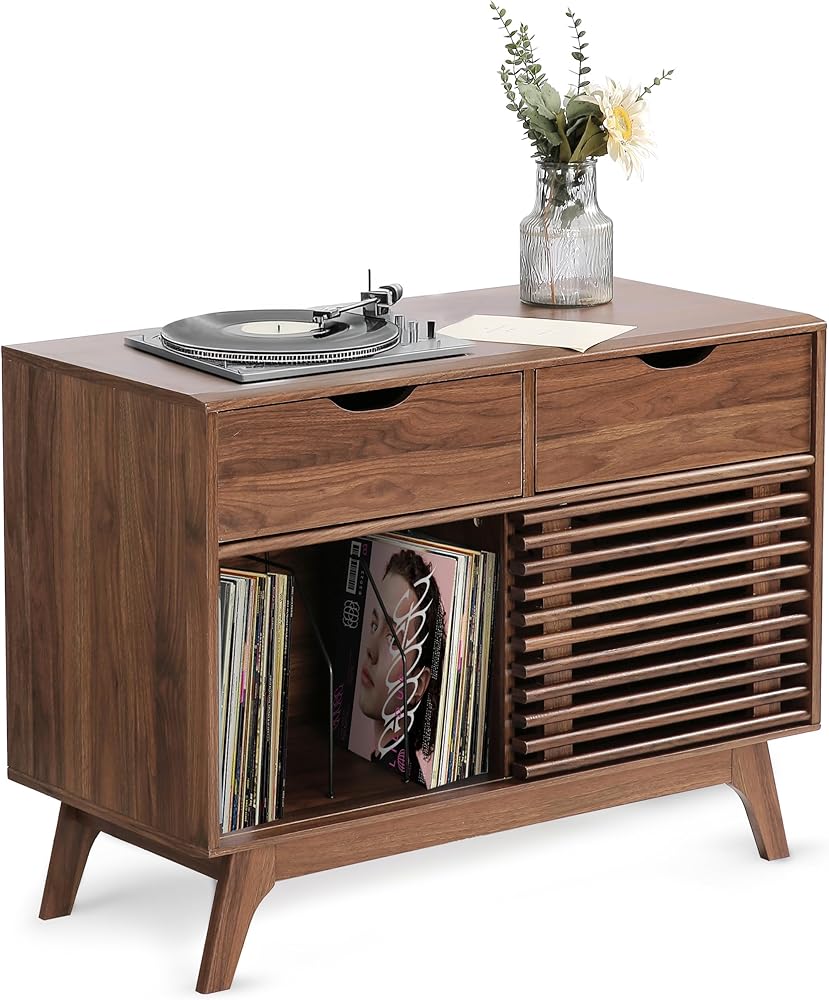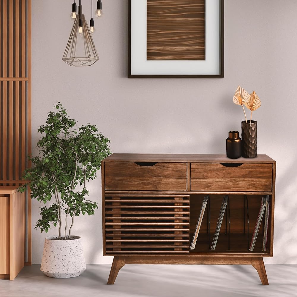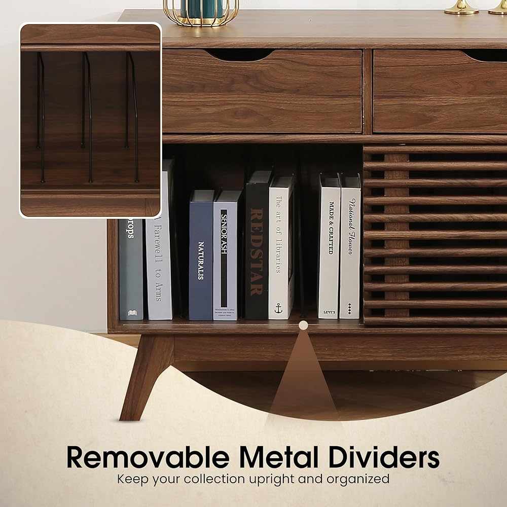 • تخزين متعدد الاستخدامات: يوفر هذا التصميم متعدد الاستخدامات لخزانة منتصف القرن تخزينًا لأكثر من مجرد سجلات. سطح الطاولة الفسيح مثالي للديكور، بينما تضمن الأبواب المنزلقة سهولة الوصول إلى جميع احتياجاتك الأساسية.