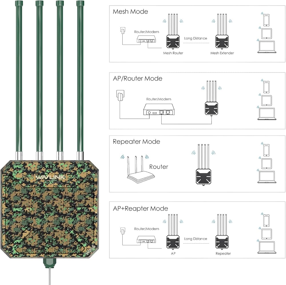 • 【أوضاع متعددة، استخدام مرن】يدعم الشبكة وAP وجهاز التوجيه والمكرر وAP+مكرر وأوضاع أخرى لتلبية احتياجاتك المختلفة وتطبيقها على المزيد من سيناريوهات الاتصال الخارجية. يعد وضع جهاز التوجيه/AP مثاليًا لتحويل الاتصالات السلكية إلى شبكات لاسلكية، بينما يمكنك ضمن وضع الشبكة الاستمتاع بشبكة WiFi سلسة باستخدام اسم شبكة واحد وكلمة مرور واحدة.
