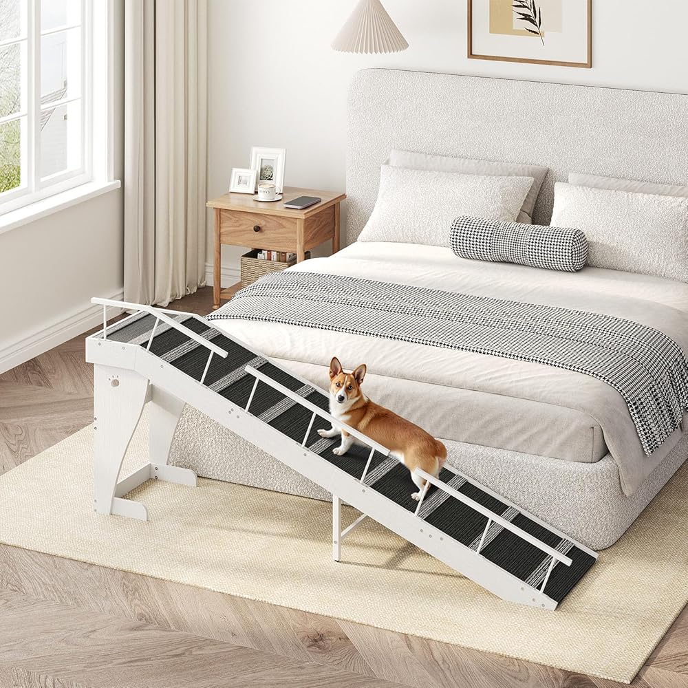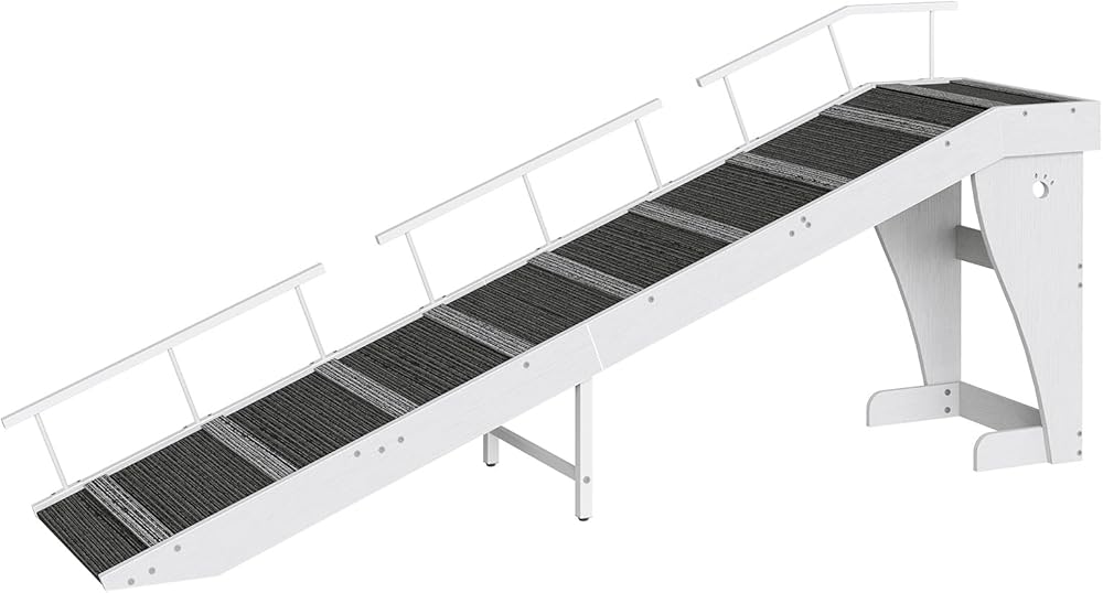 منحدر للكلاب من هوبرو للسرير، منحدر وصول إلى سرير الحيوانات الأليفة، منحدر كبير للكلاب مع سطح سجاد غير قابل للانزلاق، وقضبان أمان، ومنصة علوية، 70.9 بوصة × 15.7 بوصة × 23.6 بوصة، أبيض وأسود BW18PT03