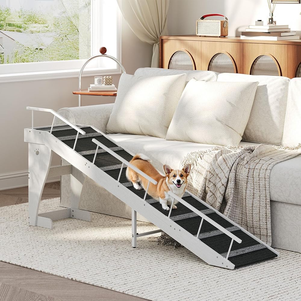 بناء قوي: منحدر الكلب مصنوع من إطار معدني قوي، ولوح حبيبي ممتاز، وسجادة متينة غير قابلة للانزلاق. تعزيز القضيب السفلي وقاعدة ثقيلة تحافظ على ثبات المنحدر للحيوانات الأليفة التي يصل وزنها إلى 150 رطلاً، مما يخلق مسارًا موثوقًا لتسلق حيوانك الأليف.