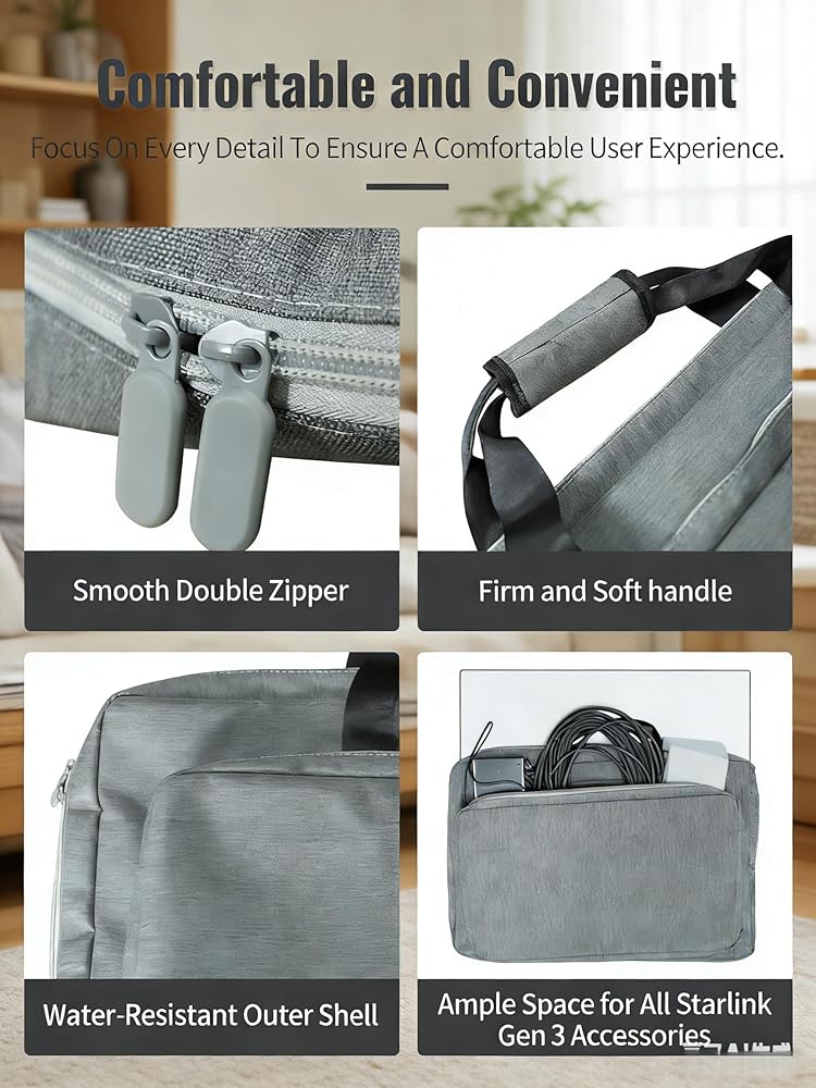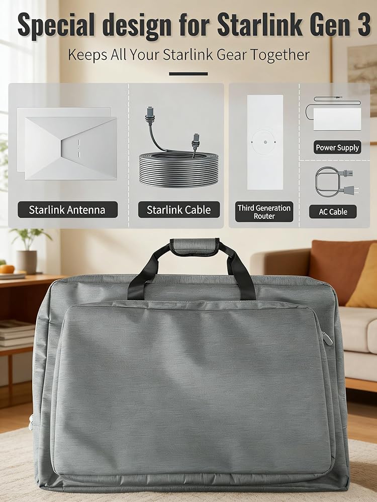 حافظة لـ Starlink Gen 3، حقيبة حمل لملحقات Starlink Gen 3 مقاومة للصدمات مع جيوب مزدوجة، حقيبة تخزين سفر أكسفورد مقاومة للغبار 600D مع مقبض لملحقات Starlink Gen 3 (رمادي)