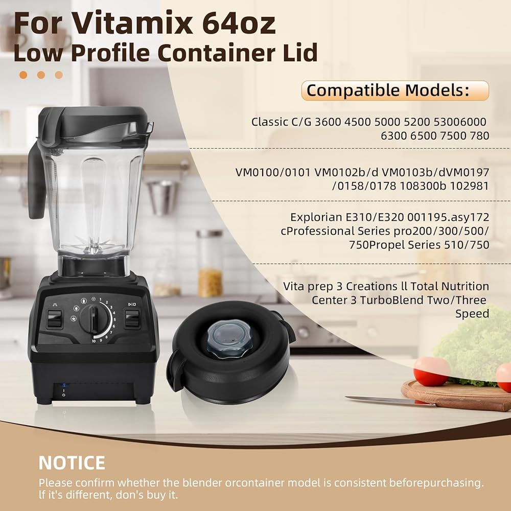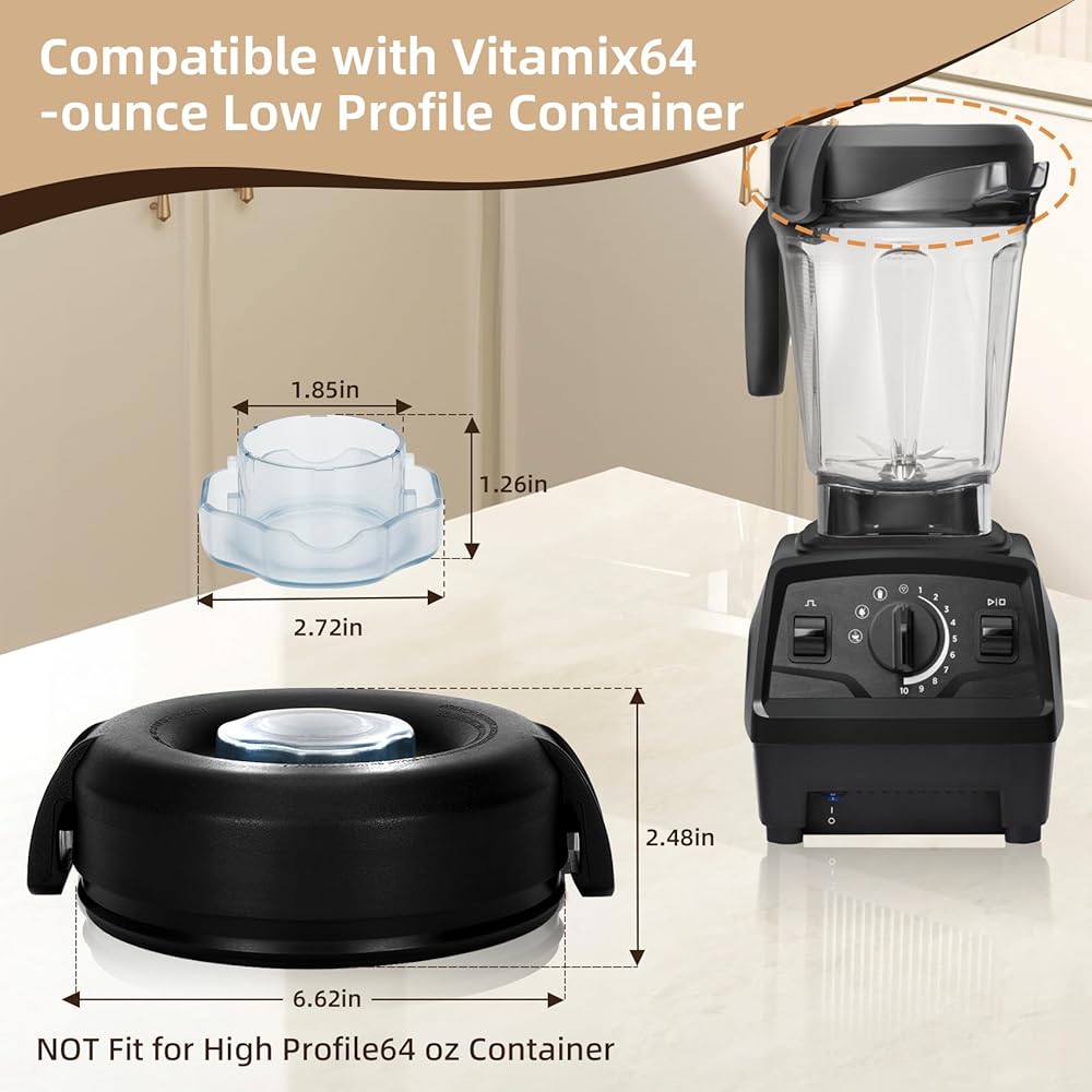 【ترقية جديدة】: غطاء الخلاط المُطوَّر الخاص بنا يناسب حاوية Vitamix ذات الحجم المنخفض بسعة 64 أونصة، ولا يناسب الحاوية عالية الحجم بسعة 64 أونصة، كما تضمن القدرة العالية على التكيف أنك أكثر كفاءة عند استخدام الخلاط. يعتبر الغطاء المكون من قطعتين أكثر ملاءمة لإضافة المكونات أثناء التشغيل، ولا يستغرق الأمر سوى بضع ثوانٍ لتثبيت أو إزالة غطاء الخلاط.