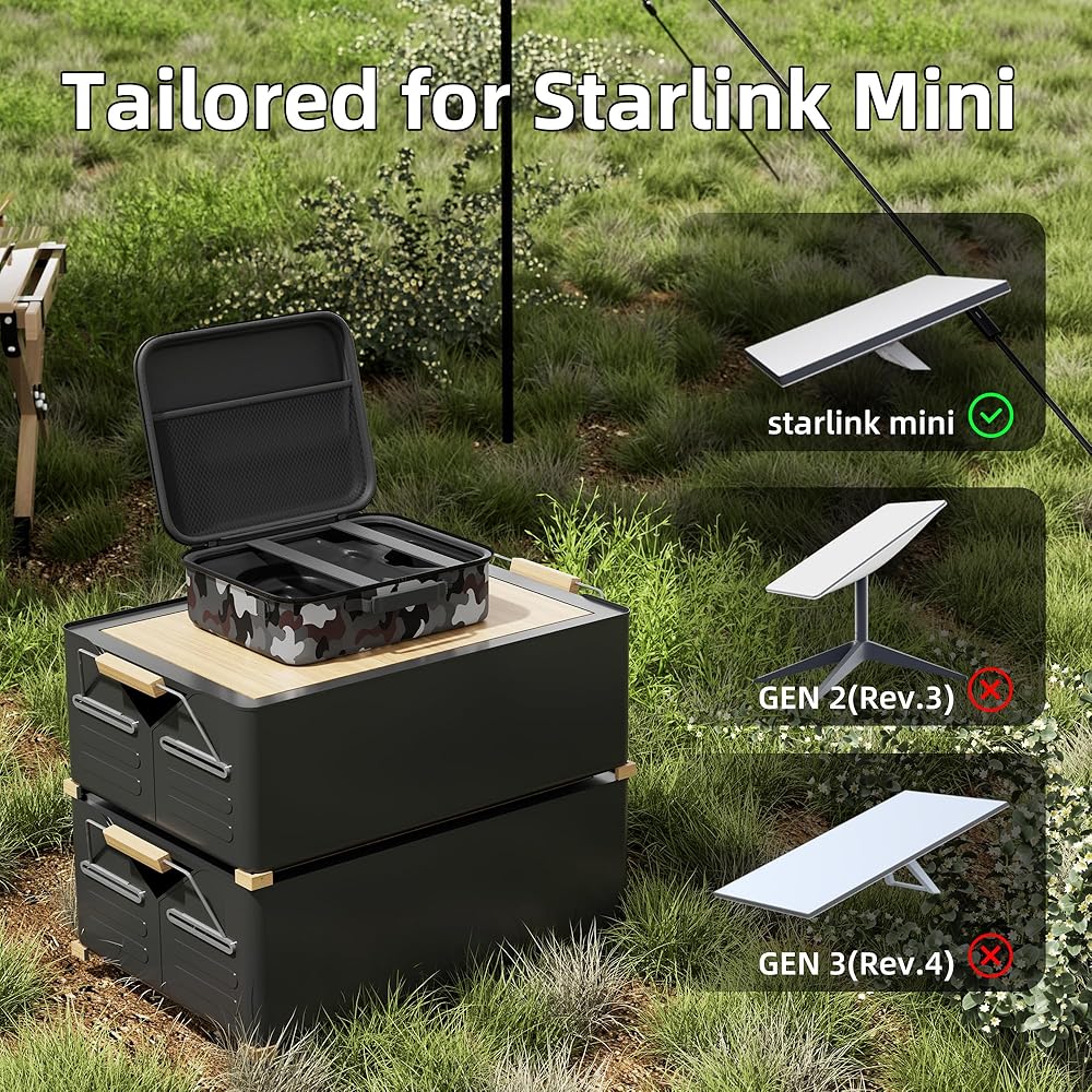 التخزين أو أثناء التنقل: يمكنك استخدامه كحقيبة تخزين Starlink Mini. كما تتميز هذه الحافظة الخاصة بـ Starlink Mini بمظهر خارجي مموه، حيث تمتزج هذه الحقيبة بسلاسة مع البيئات الخارجية مع إضافة لمسة أنيقة، مما يجعلها الرفيق المثالي لرحلات RV أو التخييم أو المشي لمسافات طويلة أو أي مغامرة خارجية.