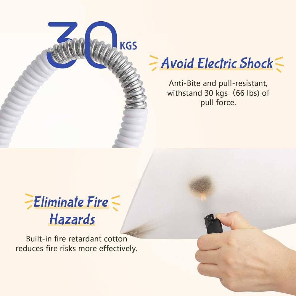 【 خالٍ من الصدمات الكهربائية 】: كابل مطور معتمد من UL. الكابل المزدوج المقاوم مصنوع من الفولاذ المقاوم للصدأ القابل للانحناء بنسبة 100% + خرطوم مقاوم للعض، مصمم بمشبك ثابت ABS متين ومقاوم للمضغ والسحب، يمكنه تحمل 30 كجم/66 رطلاً من قوة السحب، لا أكثر مخاوف بشأن الصدمة الكهربائية.