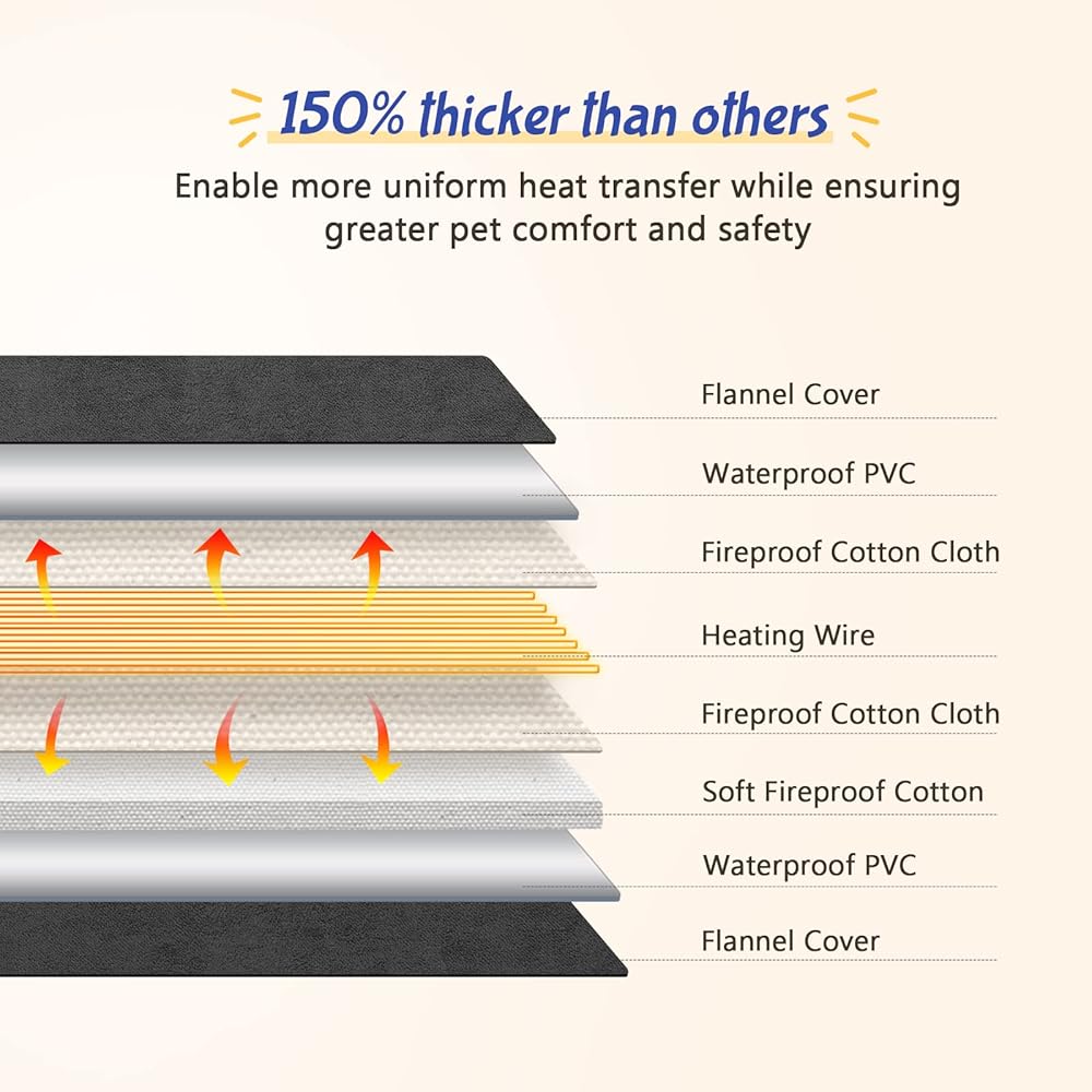 وسادة تدفئة للحيوانات الأليفة من بيكوت، كبيرة، درجة حرارة قابلة للتعديل مع مؤقت، وسادات تدفئة للكلاب مع كابل مزدوج المقاومة، طبقة مقاومة للماء، وسادة تدفئة للقطط، وسادة تدفئة داخلية كهربائية للكلاب والقطط، حصيرة ساخنة