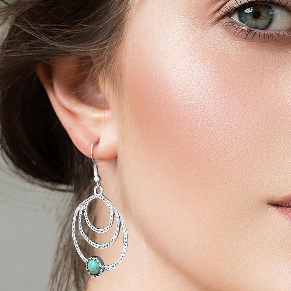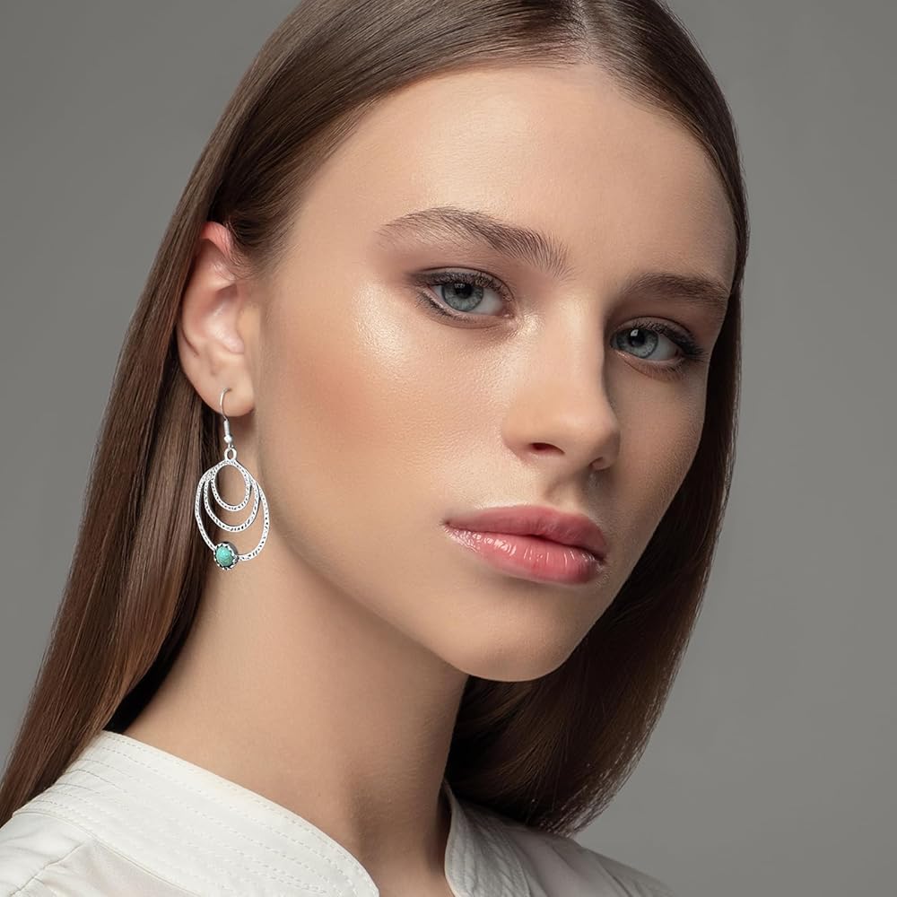 [High Quality] These silver dangle earrings are made of natural turquoise and and silver plated ear hook. Their surface undergoes an advanced electrification process, making them highly resistant to fade. Additionally, they are 100% free from BPA, nickel, cadmium, and lead, making them hypoallergenic and safe for your skin.