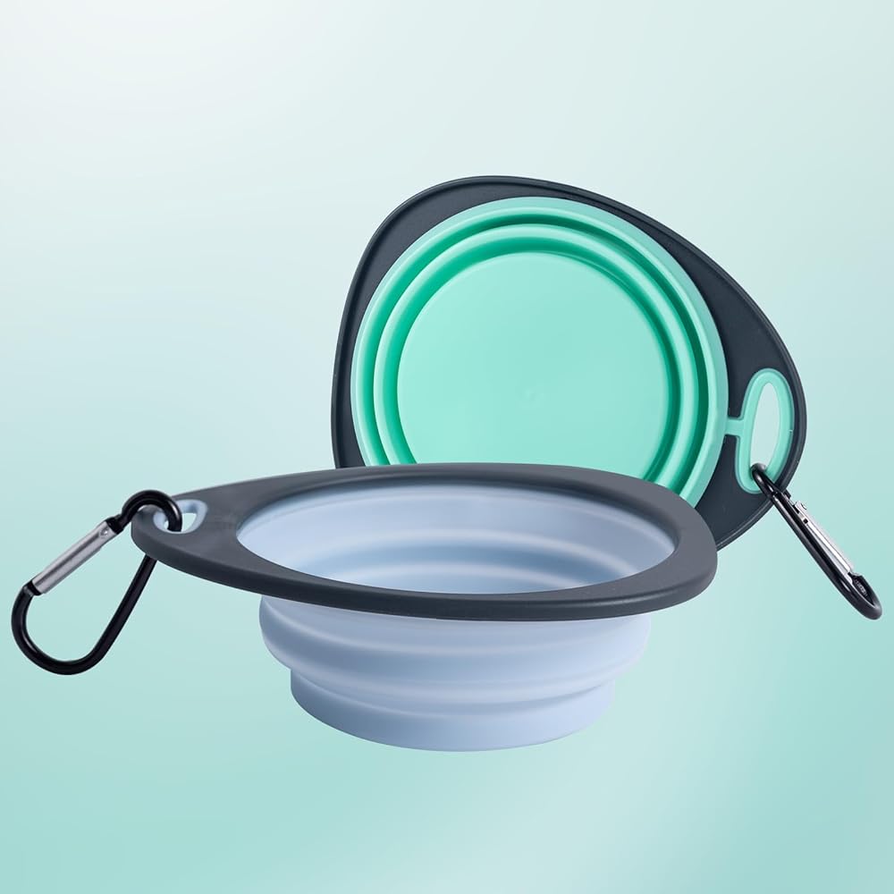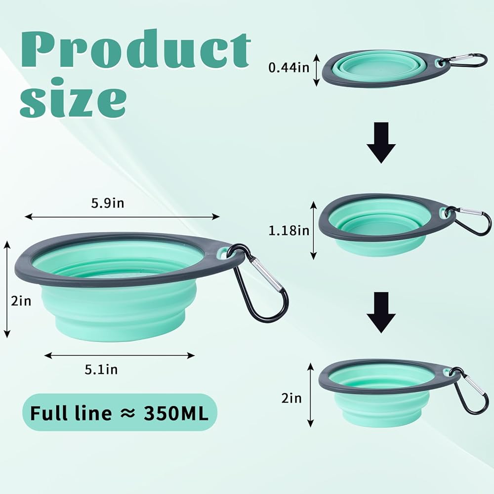 السعة والألوان: 5.9 (طول) × 5.1 (عرض) × 2 (ارتفاع) بوصة (ممتدة)، ارتفاع 0.44 بوصة (مطوي)، كل وعاء يحمل ما يصل إلى 12 أونصة/350 مل من الماء، متوفر باللونين الأزرق والأخضر، هذا الكلب/ توفر أوعية الماء المخصصة للسفر للقطط لمسة من الأناقة لرفيقك ذو الفراء أثناء الرحلات