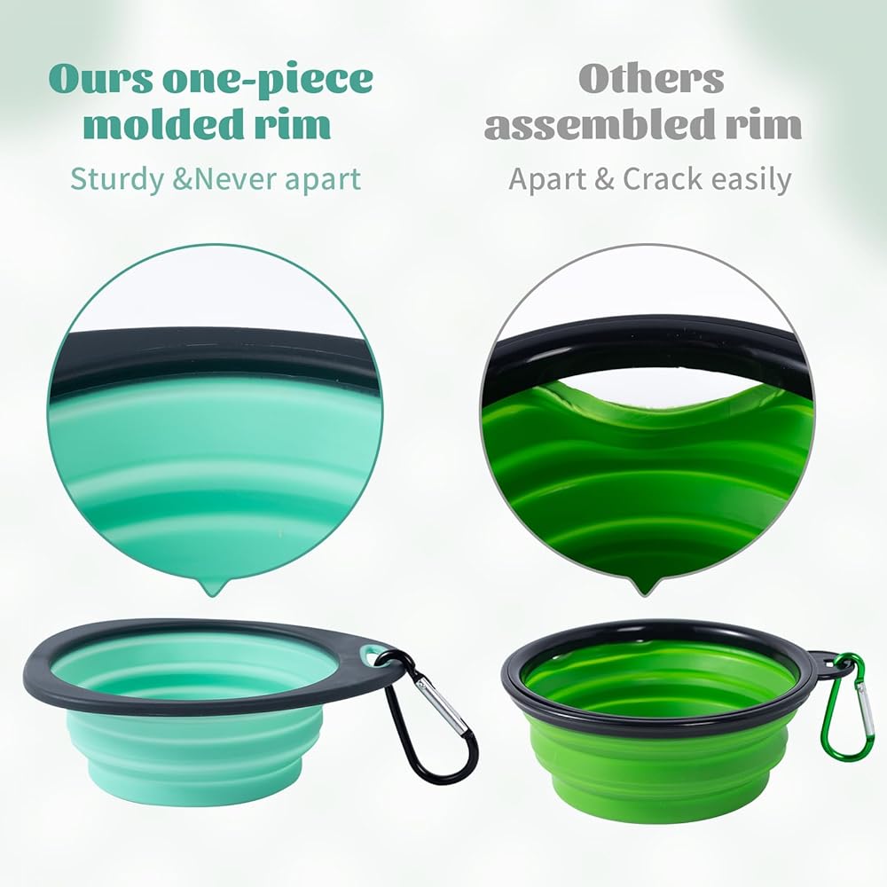 أوعية للكلاب قابلة للطي، قطعة واحدة مصبوبة بحواف للسفر، أطباق مياه للكلاب غير مجمعة ذات حافة بلاستيكية قابلة للطي ومدمجة للحيوانات الأليفة والمشي لمسافات طويلة والتخييم، باللون الأزرق والأخضر
