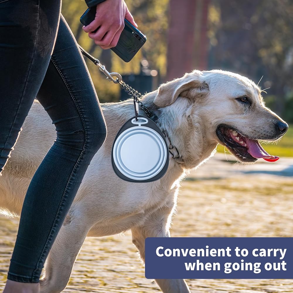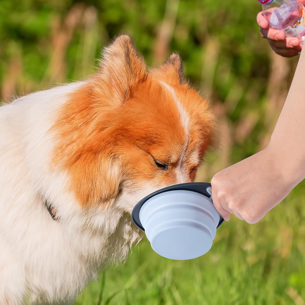 وعاء سفر للكلاب قابل للحمل وخفيف الوزن: أوعية للكلاب صغيرة الحجم وسهلة الاستخدام، قابلة للطي وخفيفة الوزن، تغذي حيوانك الأليف بالماء/الطعام وقتما تريد، مما يجعلها مثالية للمشي والمشي لمسافات طويلة ورحلات التخييم.