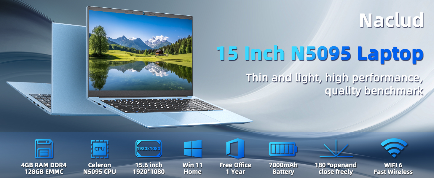 أجهزة كمبيوتر محمولة مقاس 15.6 بوصة، كمبيوتر محمول يعمل بنظام Windows 11 مع ذاكرة وصول عشوائي سعتها 4 جيجابايت وذاكرة وصول عشوائي سعتها 128 جيجابايت SSD، وسعة 4 تيرابايت قابلة للتوسيع، ومعالج Celeron N5095 رباعي النواة (يصل إلى 2.9 جيجاهرتز)، لمدة عام واح