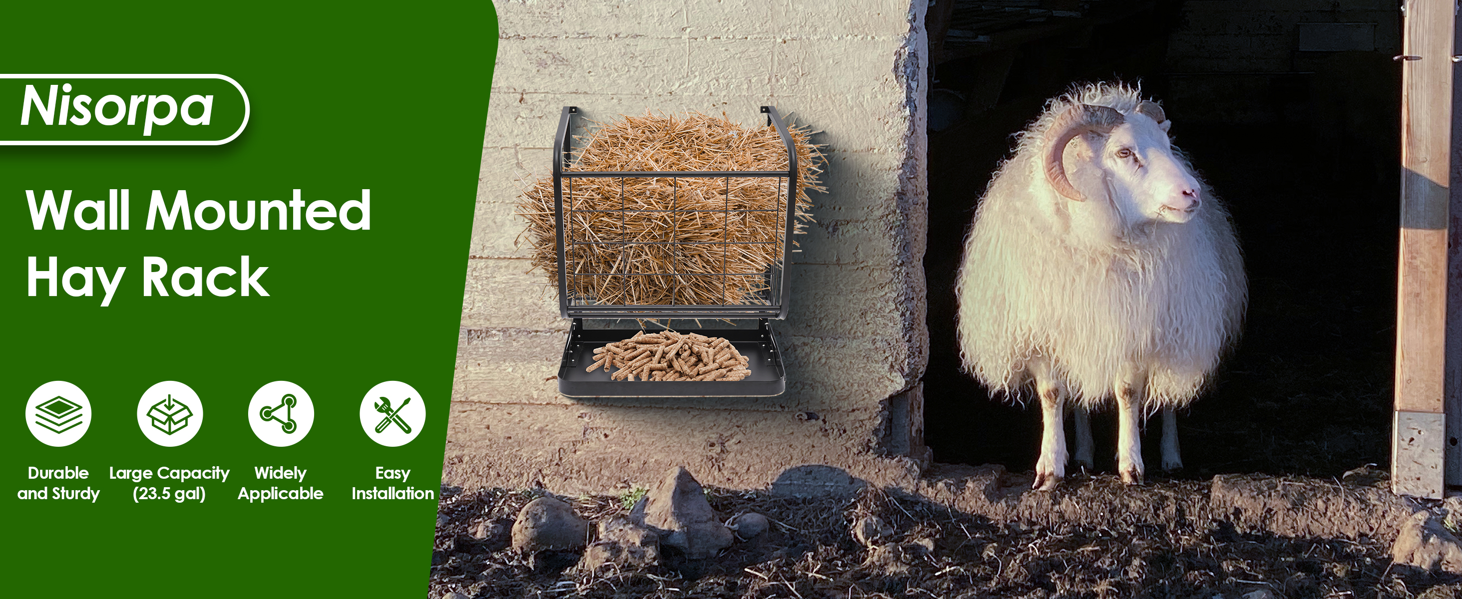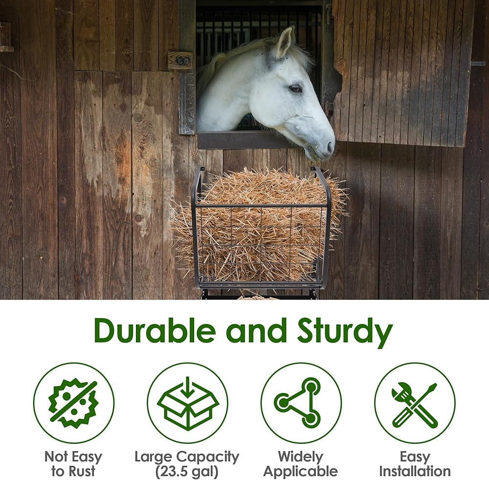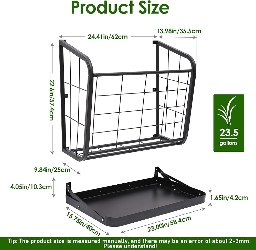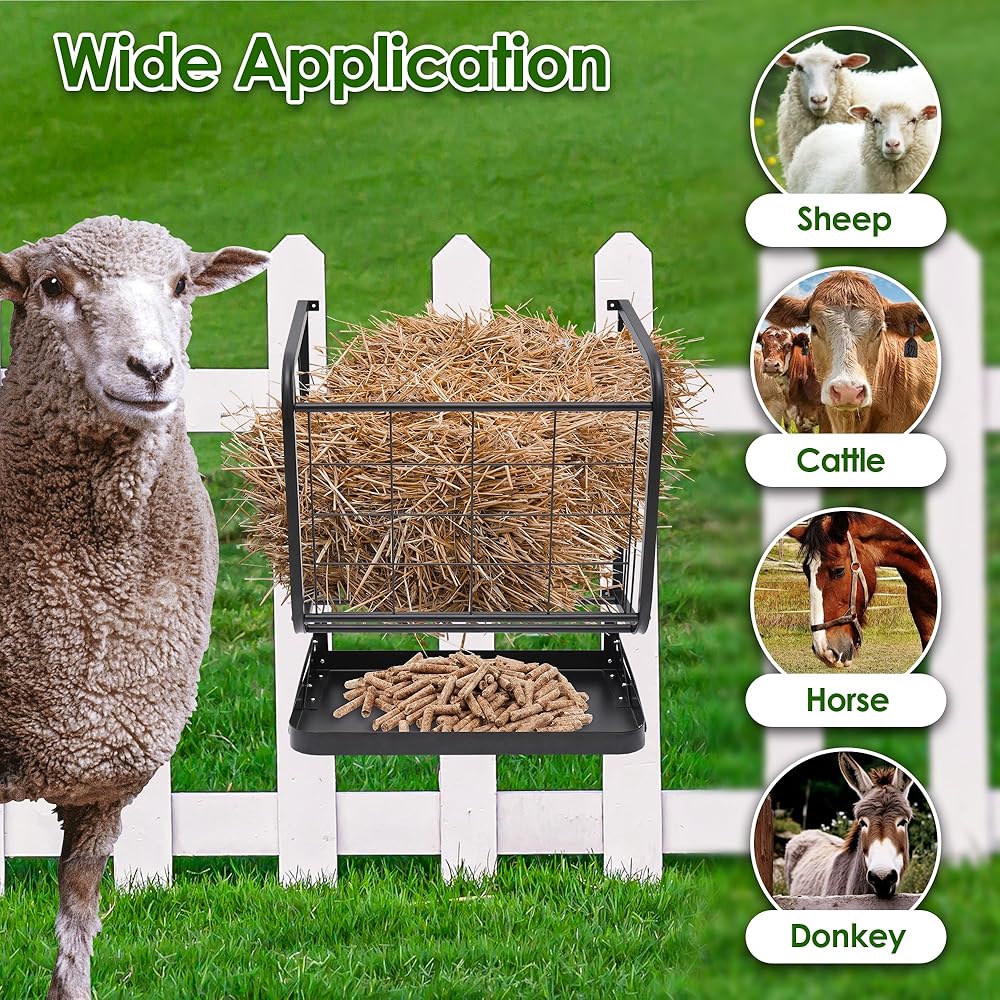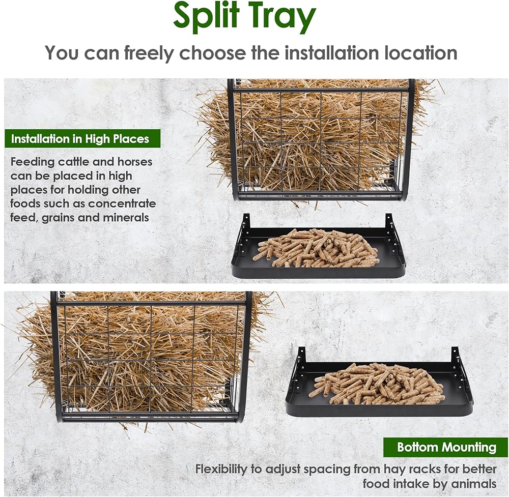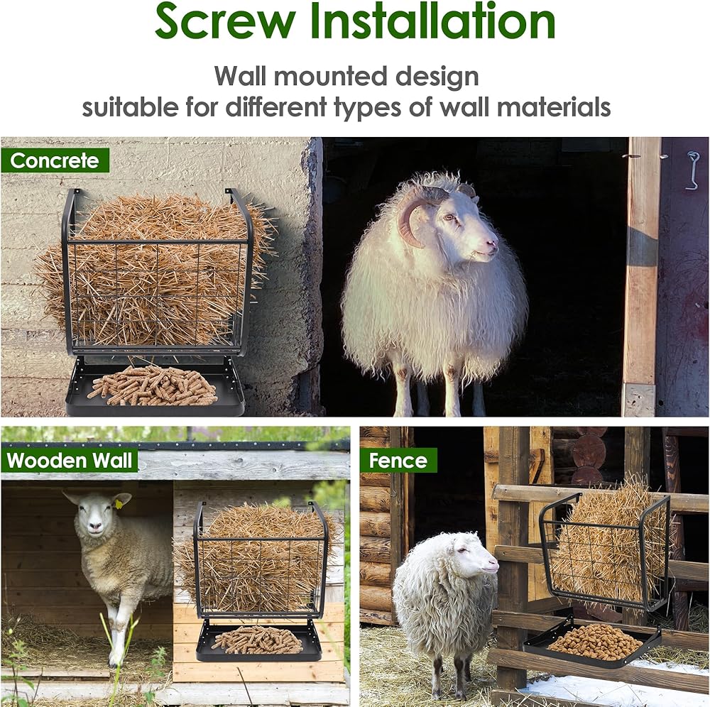 Nisorpa Hay Rack جدار جبل، 23.5 جالون الثقيلة القش تغذية الماعز 2 في 1 الحصان الأغنام القش القش مع صينية قابلة للفصل، رف القش متعدد الجوانب للأغنام والأبقار والأبقار الماشية