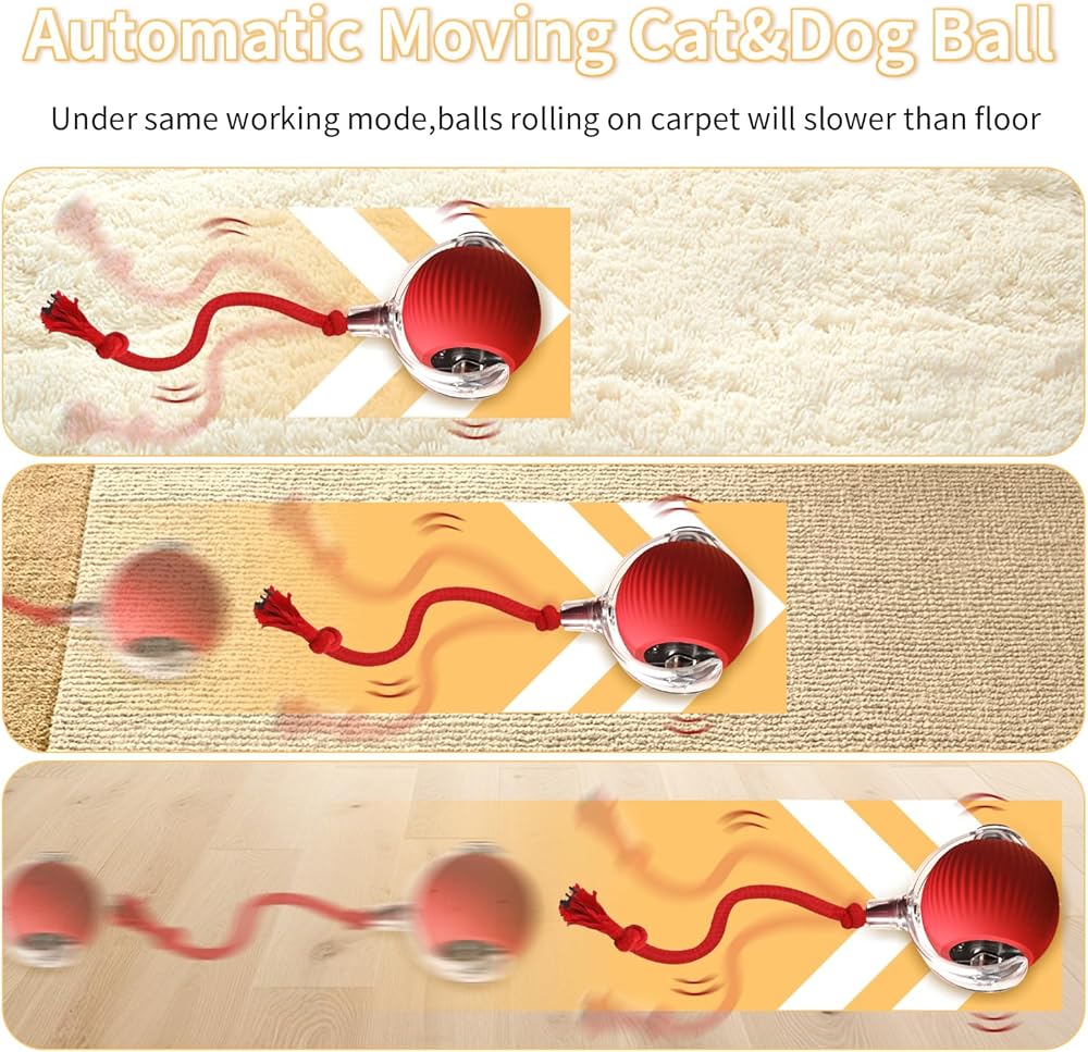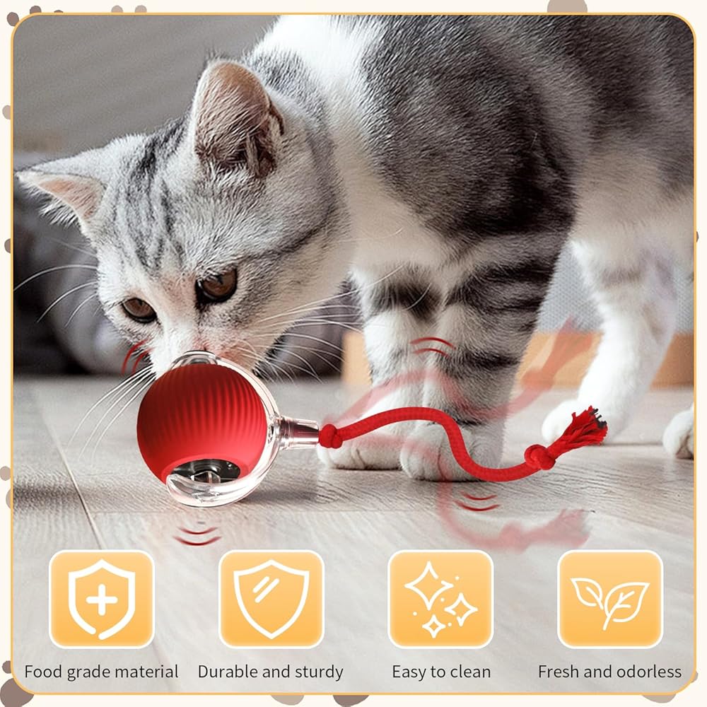 كرة ألعاب تفاعلية للقطط، كرة ألعاب للقطط تتحرك تلقائيًا، كرة للكلاب الكهربائية، كرة دوارة تفاعلية للكلاب والقطط للأنشطة الداخلية. كرة الحيوانات الأليفة المتدحرجة الأوتوماتيكية الذكية (أحمر).