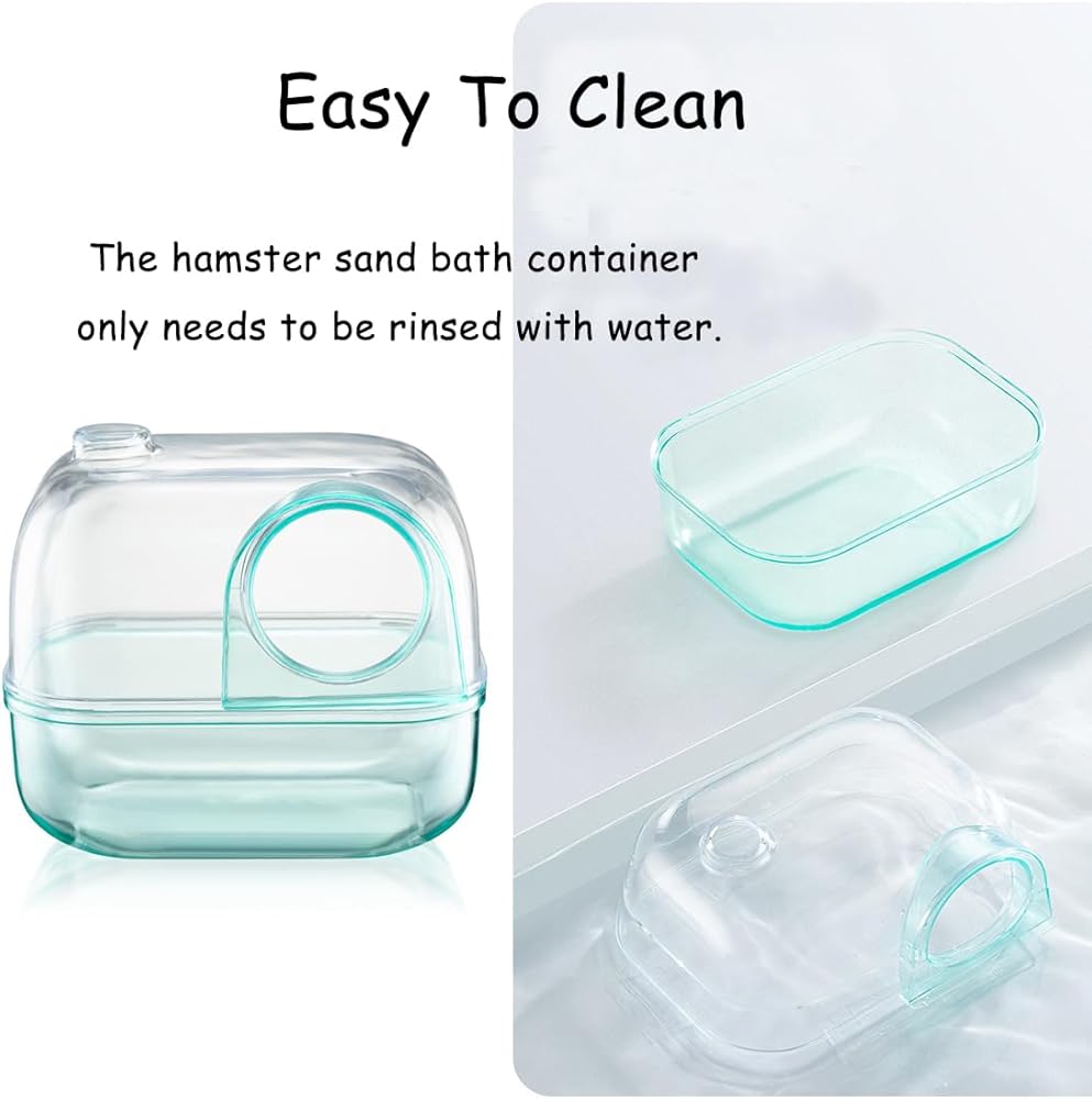Easy to clean: The surface of the hamster sand bath container is very smooth and easy to open, just rinse with water. You can easily remove, clean, and replace the hamster bath sand at any time.