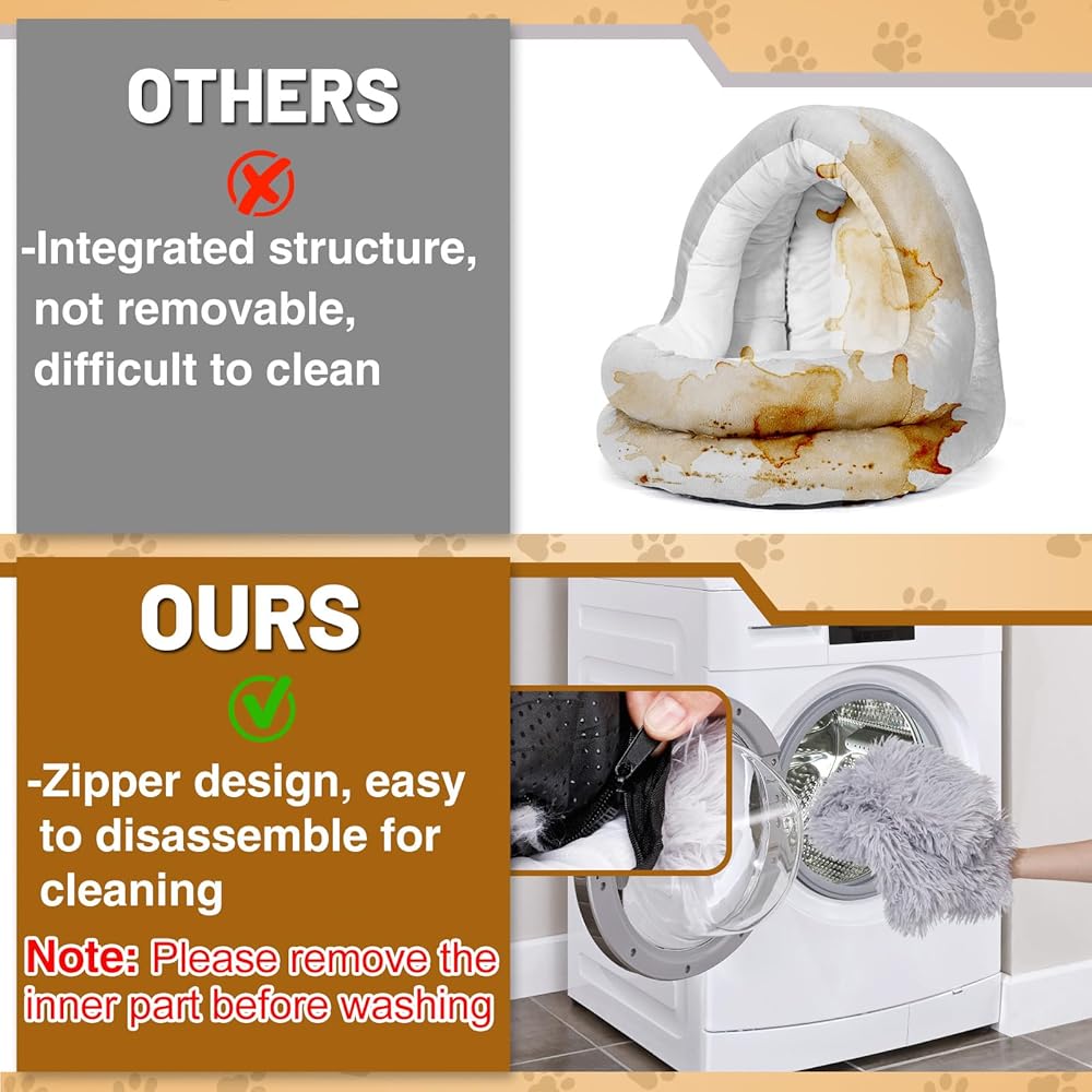 ناعم ودافئ: مصنوع من القطيفة الرقيقة، سرير القطط الساخن هذا ناعم وصديق للبشرة، مع تصميم مغطى يوفر لقطتك شعورًا بالأمان. السحاب يجعل من السهل إزالته للتنظيف، كما يضمن سلك الطاقة المقاوم للمضغ السلامة. نقاط مضادة للانزلاق في الأسفل تمنع التحرك أثناء الاستخدام