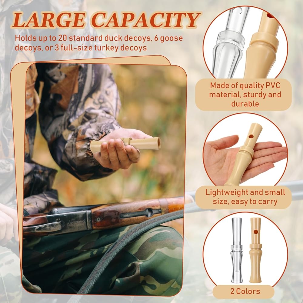 Duck Hunting Accessories: including 2 pcs of duck calls for hunting in clear and khaki respectively, this allows you to evoke the duck sounds and draw them near, making your hunting experience more successful