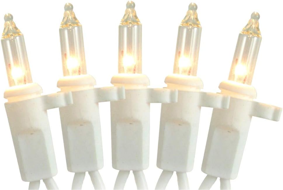 Features: Color: clear bulbs / white wire Number of bulbs on string: 70 Bulb size: mini Spacing between each bulb: 3 inches Lighted string length: 16 feet Total string length: 18.5 feet Width of clip: .25 inches Additional Product Features: Lights are equipped with clip type sockets If one light goes out the rest will stay lit UL listed for indoor/outdoor use Comes with 2 replacement bulbs, 1 hust, and 1 replacement fuse End-to-end connectors allow you to connect multiple sets together 120 Volts, 60Hz, .24A, 28.8 watts