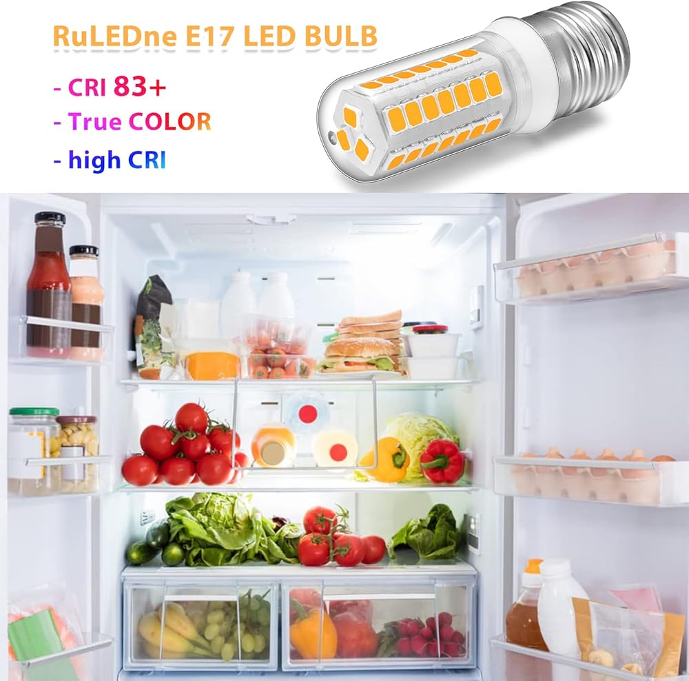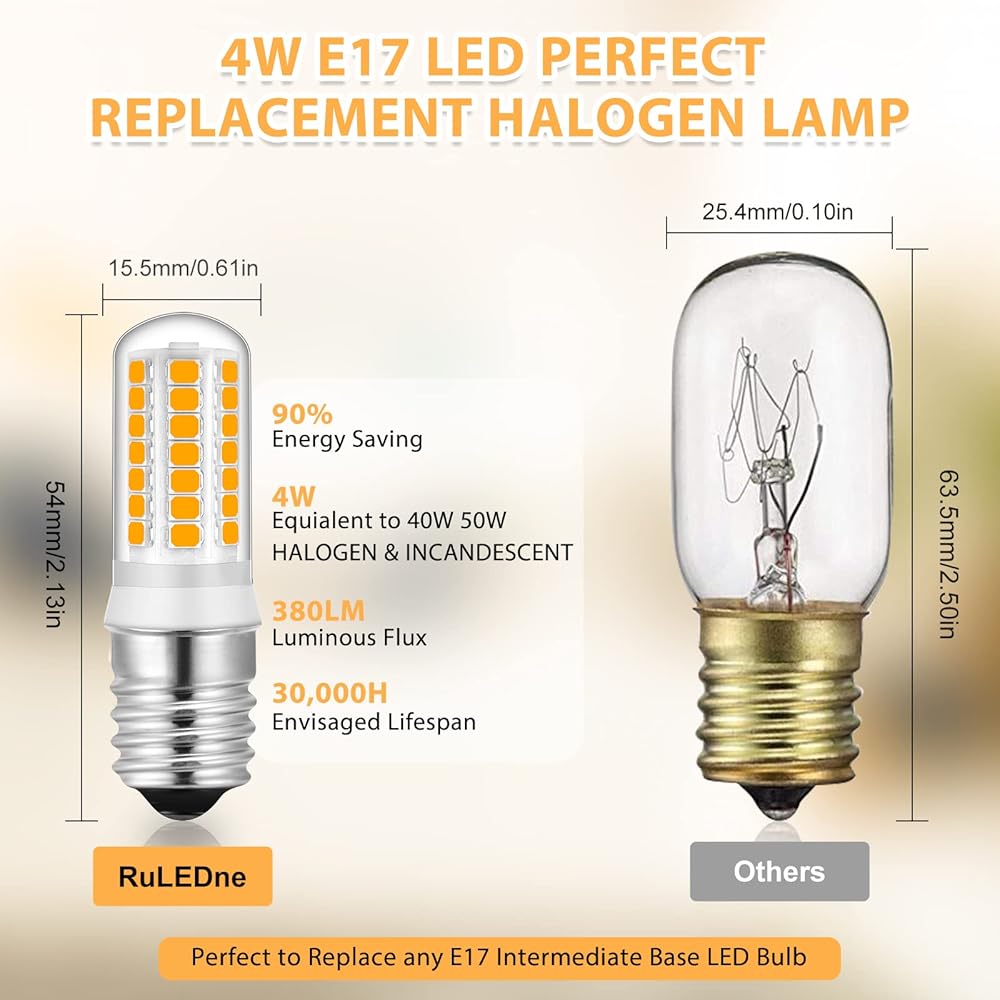 استبدال ممتاز: قطر الشكل القياسي T7: D0.61*H2.13 بوصة. لمبة الأجهزة LED بقاعدة متوسطة E17 لتحت الميكروويف، غطاء الموقد، غطاء المحرك، الثلاجة، استبدل أيضًا 8206232A 8206232 1890433 AP4512653 WB36X10003 WB25X10030 6912W1Z004B.