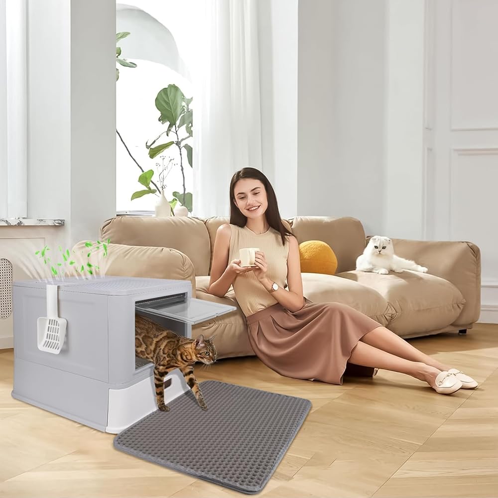 • 【صندوق فضلات القطط الكبير جدًا】: صندوق فضلات القطط مقاس XL مثالي للقطط الكبيرة، بقياس 23.6 × 15.7 × 15.7 بوصة. توفر مساحة واسعة ويمكنها استيعاب ما يصل إلى 37 لترًا من فضلات القطط، وهي كافية لقطط بالغة لمدة 30 يومًا. لا تقلق بشأن تغيير فضلات القطط أثناء العمل أو السفر.