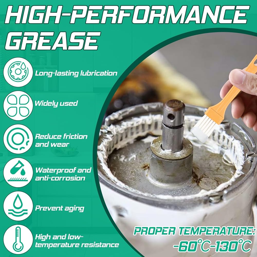 مادة تشحيم طويلة الأمد: تحتوي كل زجاجة على كمية كبيرة من الشحوم تبلغ 4.23 أونصة، وهي كافية لتطبيق كامل أو لمسات متعددة. القليل منه يقطع شوطا طويلا، مما يجعله خيارًا فعالاً من حيث التكلفة وفعالاً لصيانة أجهزة المطبخ