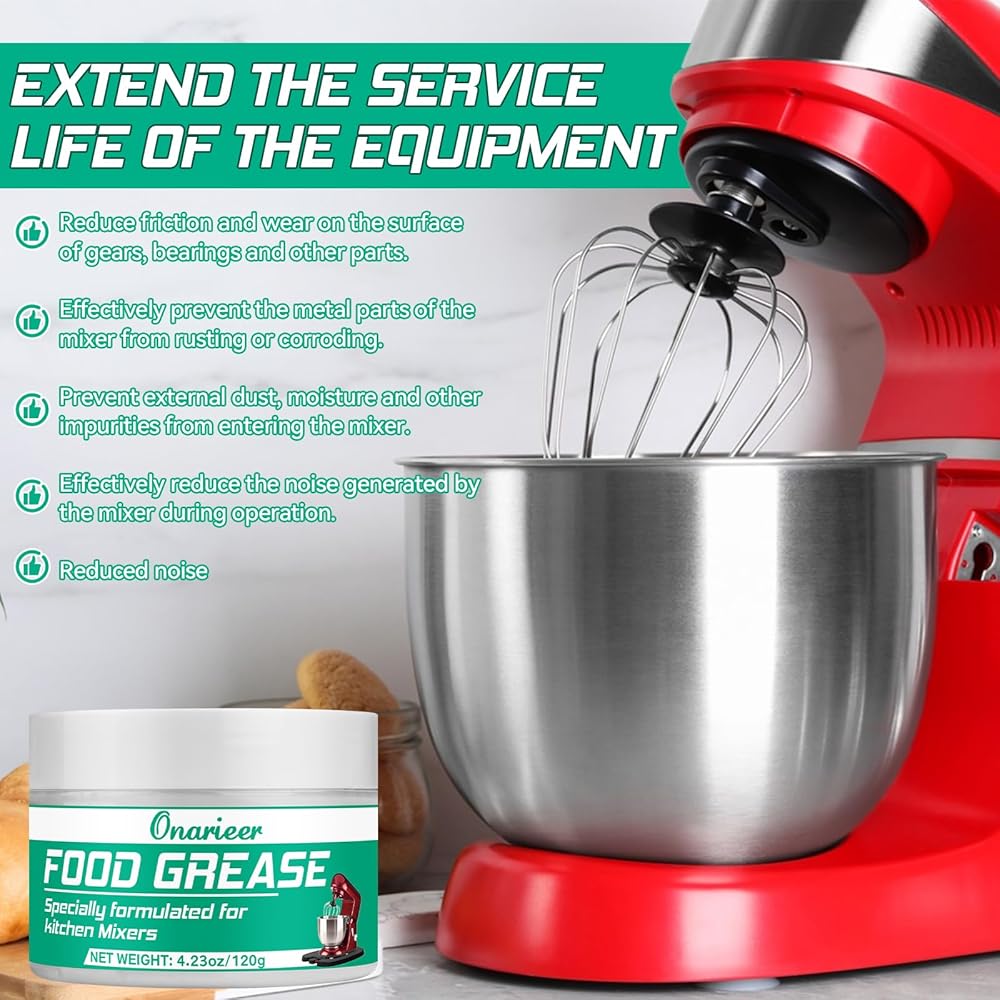 توافق عالمي للخلاطات الحاملة: تم تصميمه خصيصًا للتوافق مع مجموعة واسعة من العلامات التجارية والموديلات للخلاطات الحاملة، حيث يعمل شحمنا المخصص للطعام على تحسين أداء الخلاط الخاص بك، مما يقلل الاحتكاك ويطيل عمر أجزاء التروس.