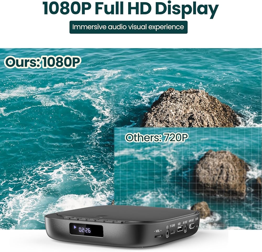 جودة صورة عالية: يمكن لمشغلات DVD الخاصة بنا للتلفزيون تشغيل فيديو عالي الدقة يصل إلى 1080 بكسل، مما يجعل الصورة أكثر وضوحًا وتفصيلاً. يعتمد مشغل DVD الخاص بنا تقنية الرقاقة الجديدة، مما يجعل التشغيل أكثر هدوءًا وسلاسة، ويمكنه أيضًا تشغيل DVD المخدوش مع تصحيح الأخطاء.