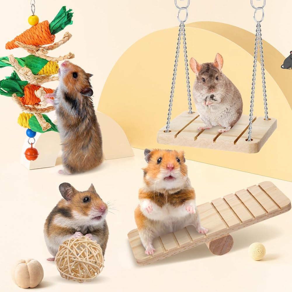 1 x Exercise wheel, 4 x hamster chew toys