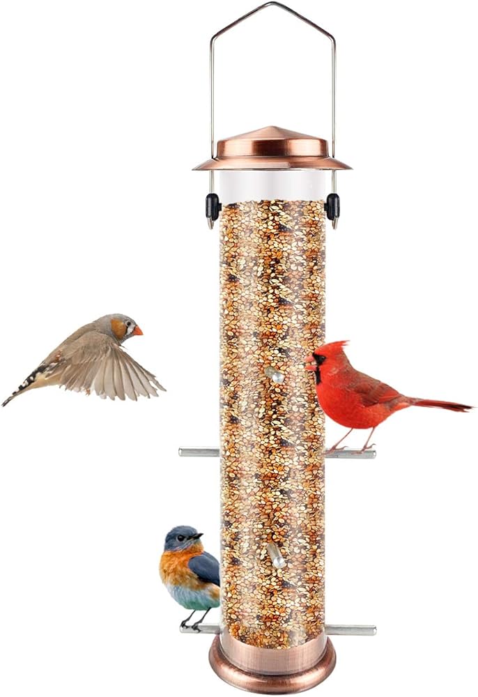 وحدة تغذية الطيور من MIXXIDEA Finch، وحدة تغذية بذور الشوك المعدنية المعلقة مع 8 منافذ تغذية، وحدة تغذية بذور Nyger، وحدة تغذية Goldfinch للحديقة الخارجية النحاسية