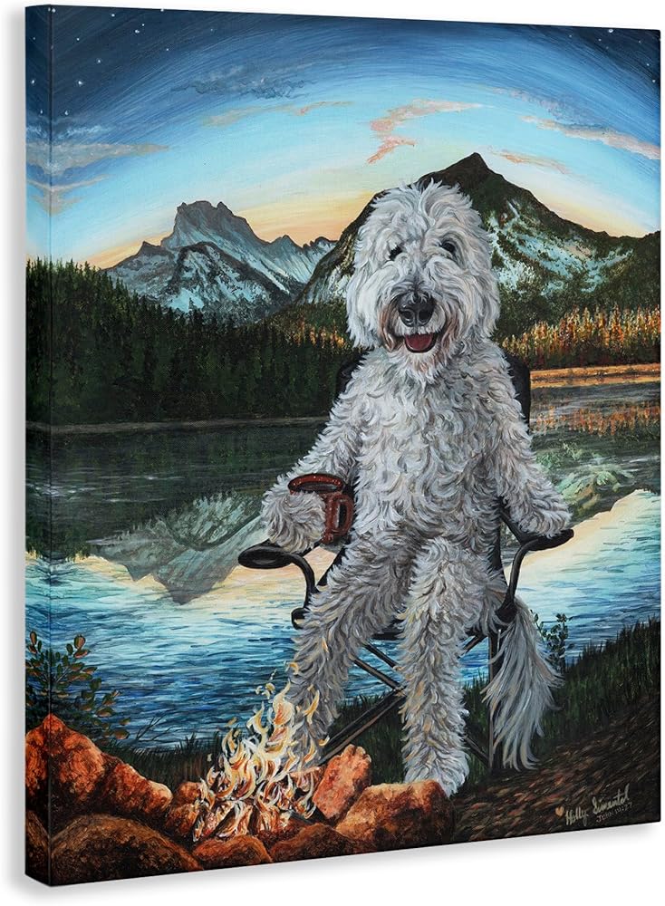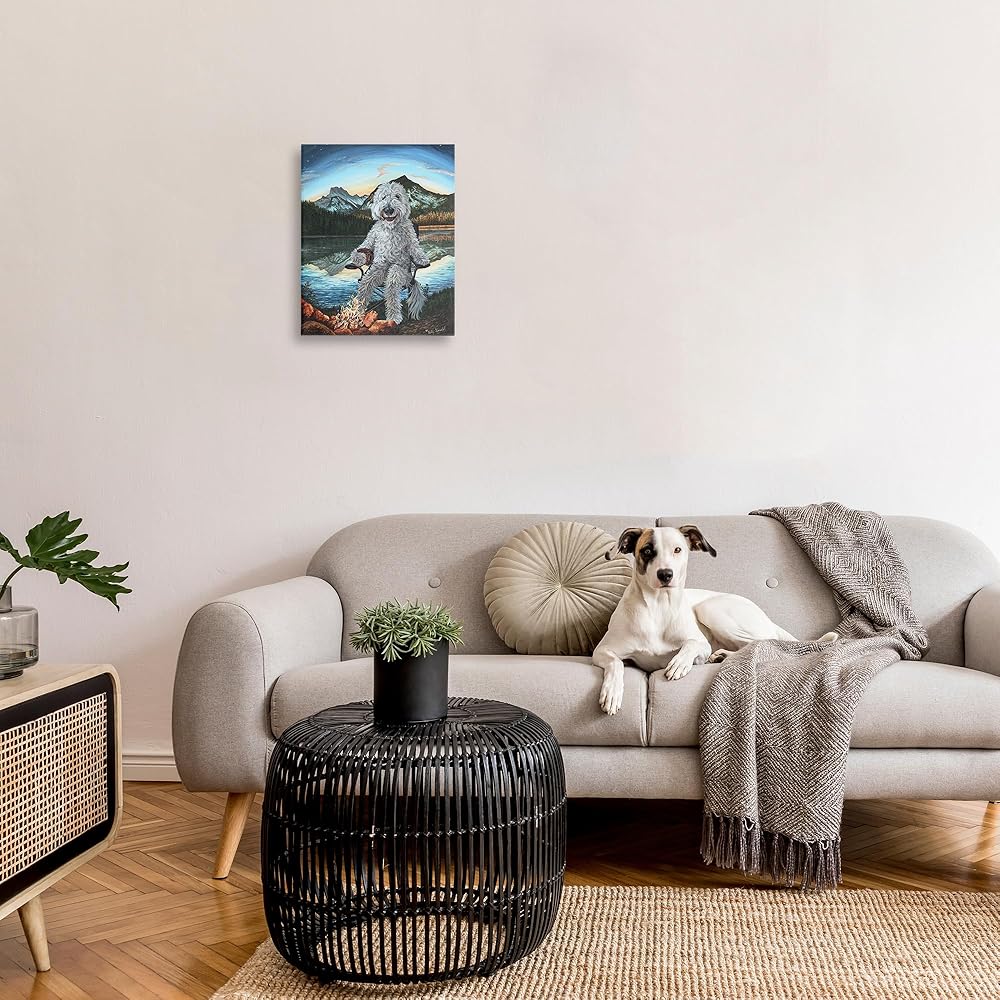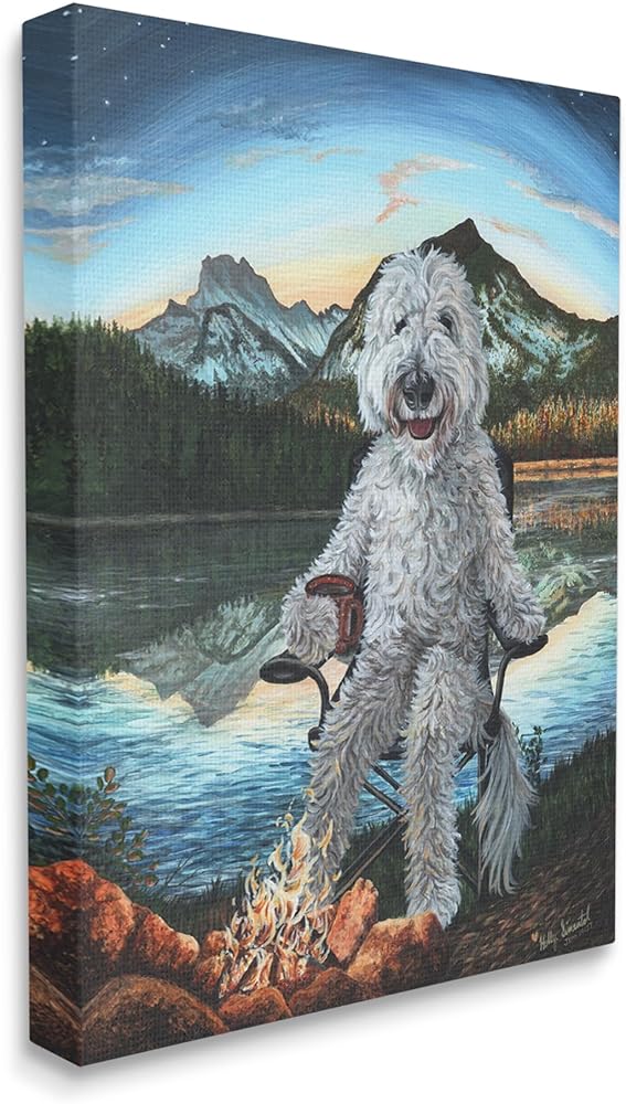 Stupell Industries Dog من تصميم Campfire المناظر الطبيعية من القماش الكتاني الجداري من تصميم Holly Simental