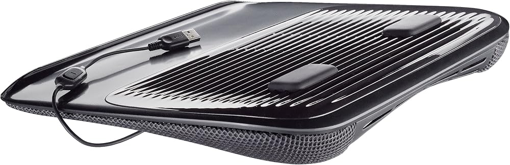 Noteworthy Features • 2-speed adjustable airflow • Two air intakes plus large fan grill for better cooling • Quiet, energy-efficient, USB-powered fan • Slim, lightweight, easy to take from room to room • Fits laptops with up to 16-inch display