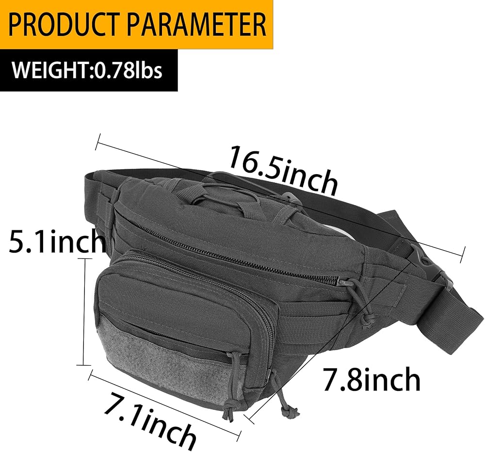 [حجم حزمة الخصر]: حقائب فاني بحجم المنتج للرجال؛ 6.8 × 7.7 × 8.6 الوزن: 380 جرام. يمكن استخدامه في أي سيناريو: التنزه سيرًا على الأقدام والتخييم والسفر اليومي وما إلى ذلك.
