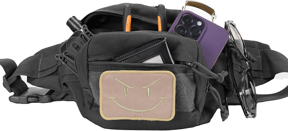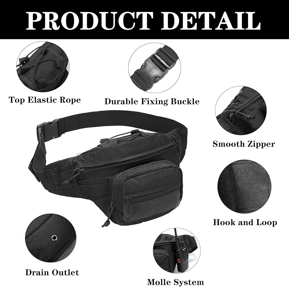 [عبوة فاني تكتيكية]: تحتوي حقيبة الخصر التكتيكية على جيبين كبيرين وصغيرين، والجانب والجزء العلوي من الساندويتش وغيرها من التحميل التكتيكي متعدد الوظائف، ويمكن تصنيف العناصر المستخدمة بشكل أفضل في أوقات مختلفة وتحميل المزيد من المعدات التكتيكية، إلى إلى حد كبير لتسهيل استخدام المستخدمين